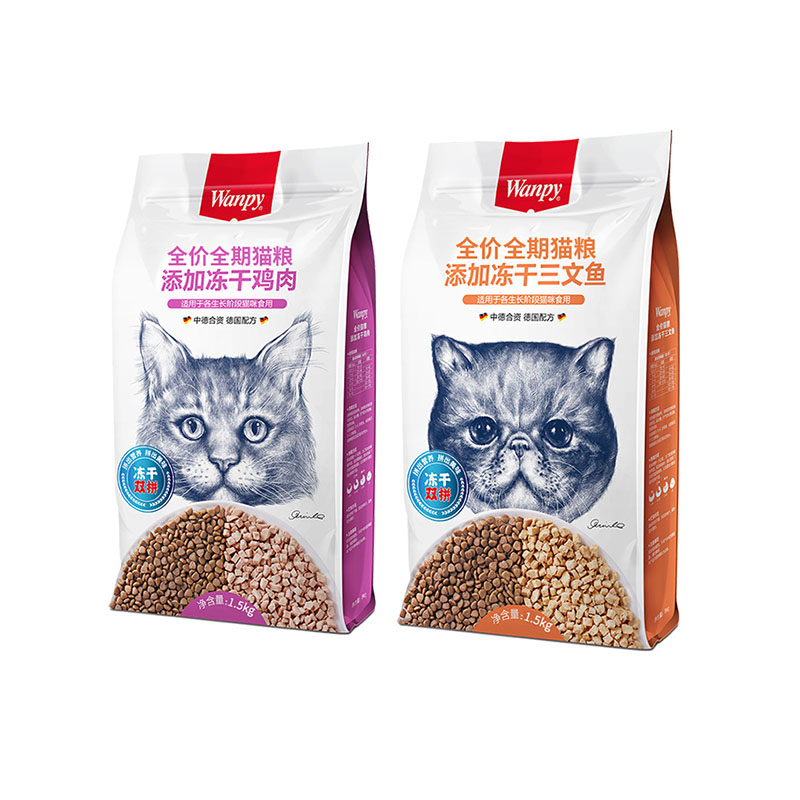 Wanpy naughty double fight freeze-dried cat food chicken salmon adult cat food fattening hair gills 1 5 8kg - Taobao