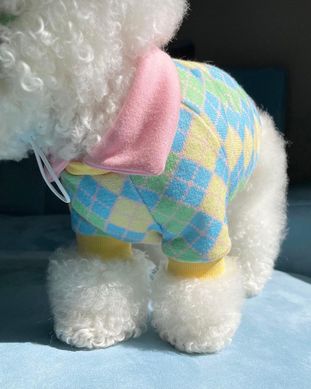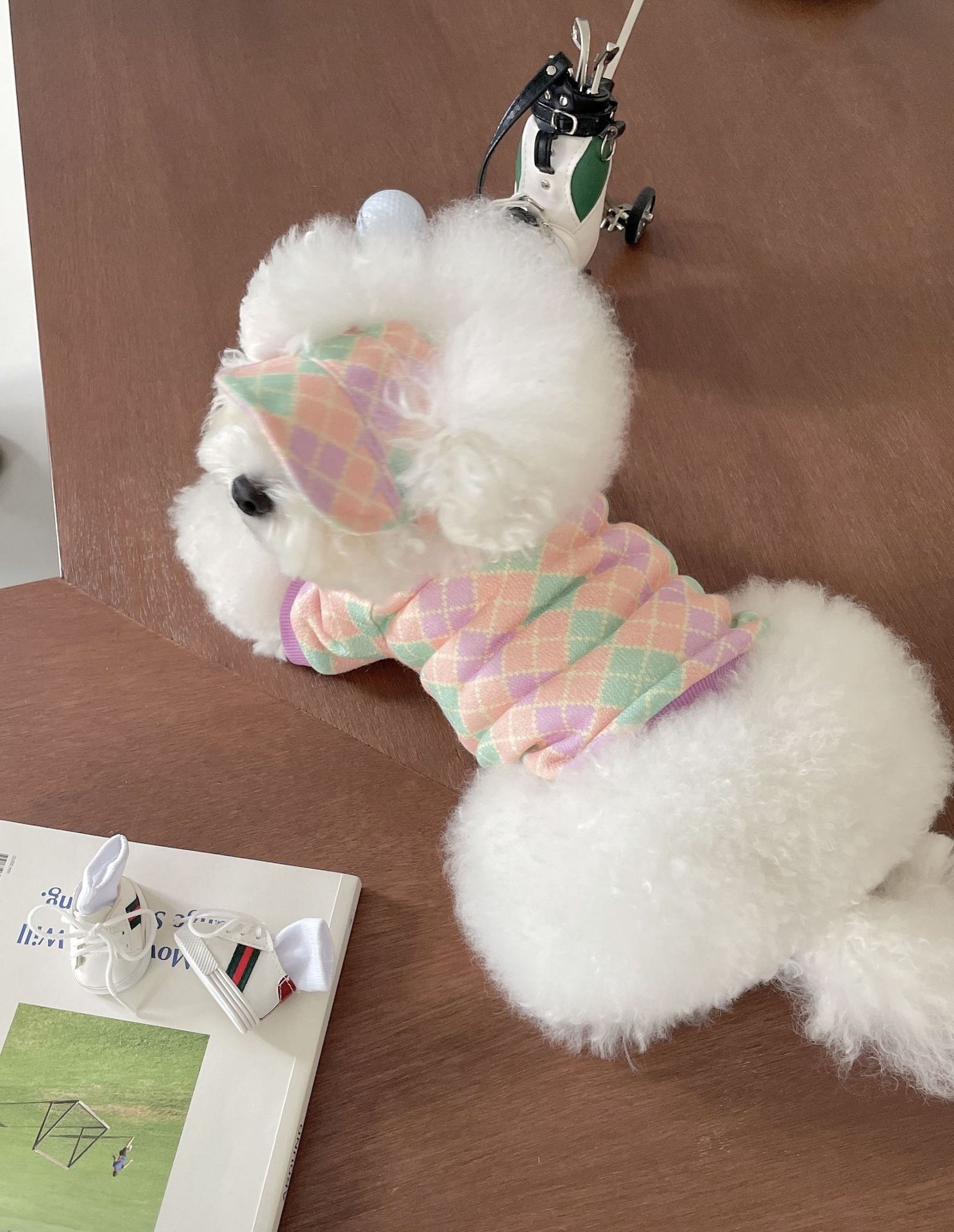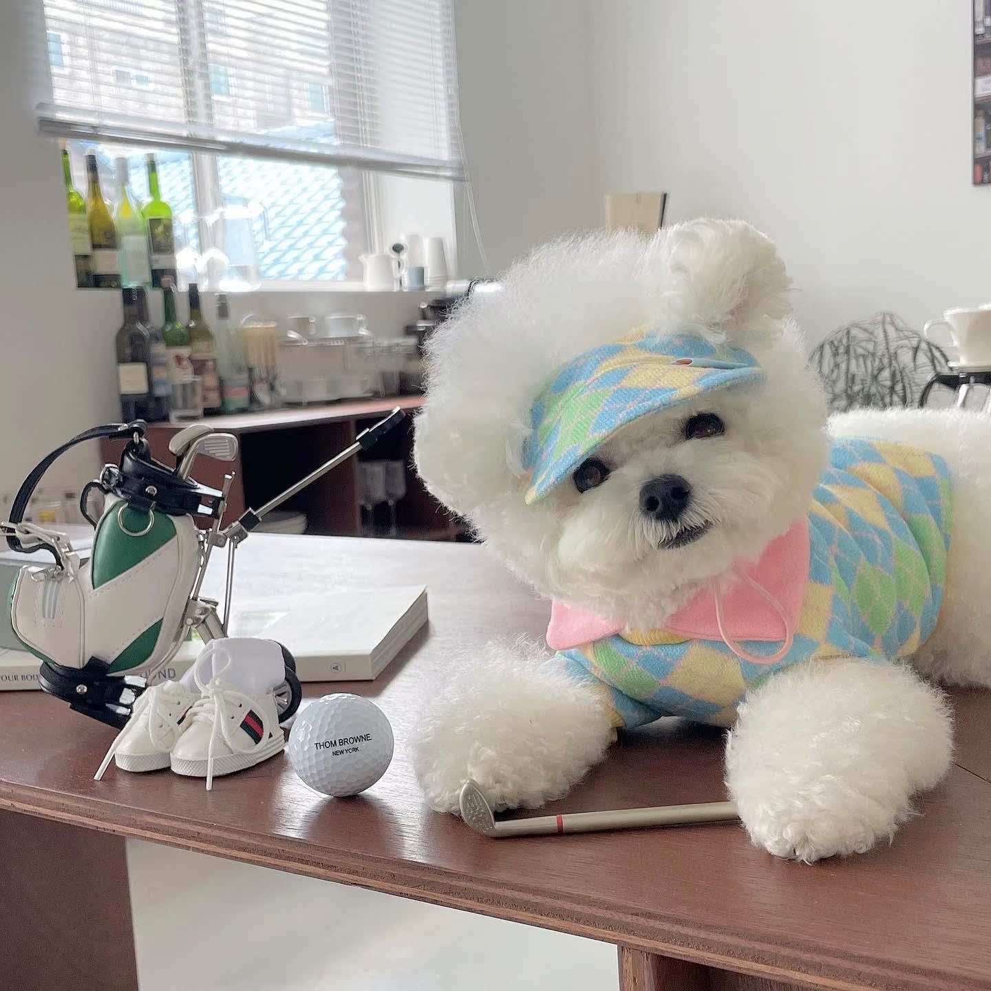 (Laughs Laughs) South Korea Ins Wind Pet Clothing Spring New Rhombus Gram Color Flipped T-shirt Golf Suit