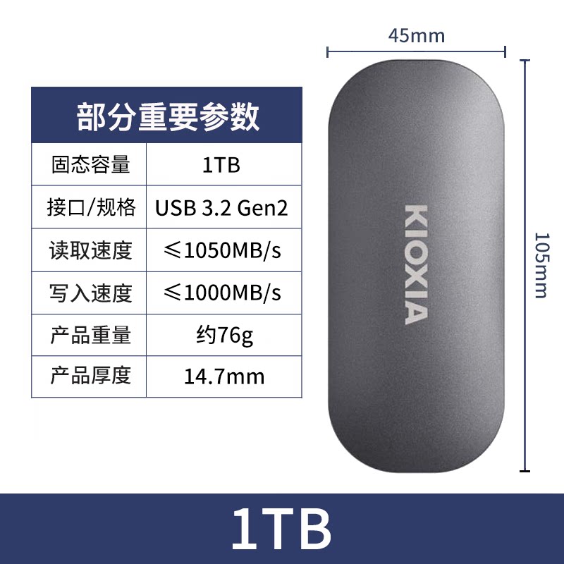 kioxia mobile solid state hard drive XD10 high-speed USB3 2 convenient Type-c interface metal shell