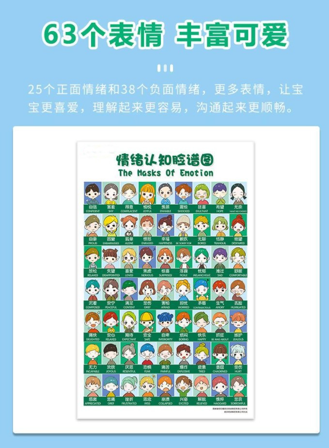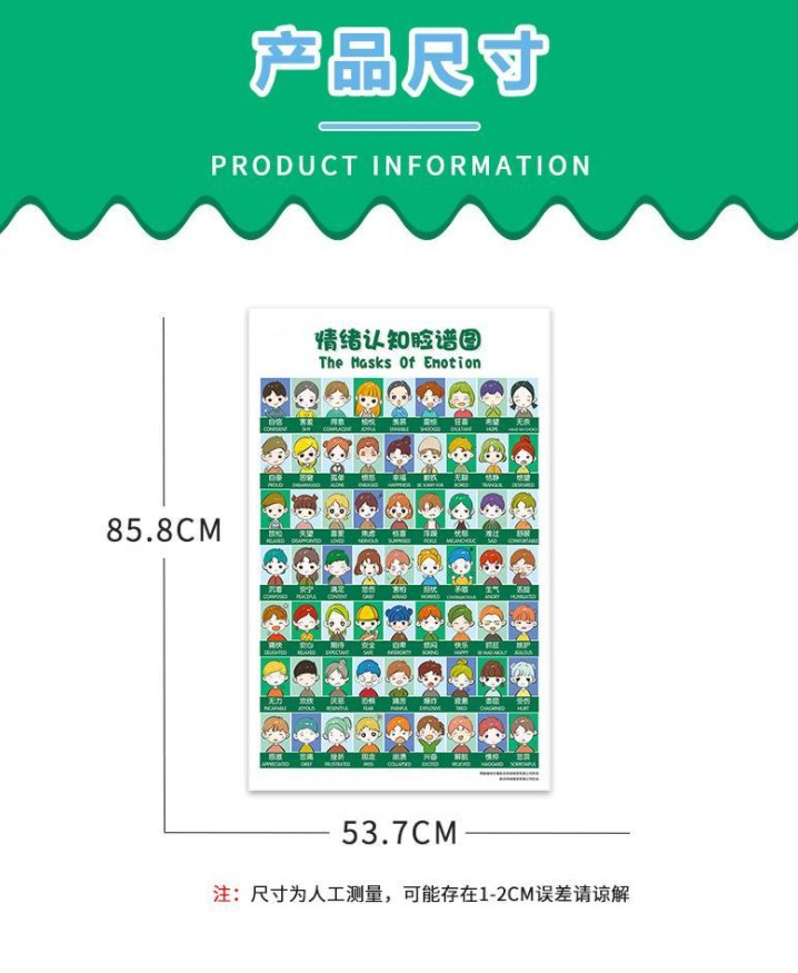 Emotional facial makeup (Chinese and English no crease board) emotional facial makeup (Chinese and English crease board) basic model with adhesive 30CM*40CM basic model with adhesive 40CM*60CM basic model