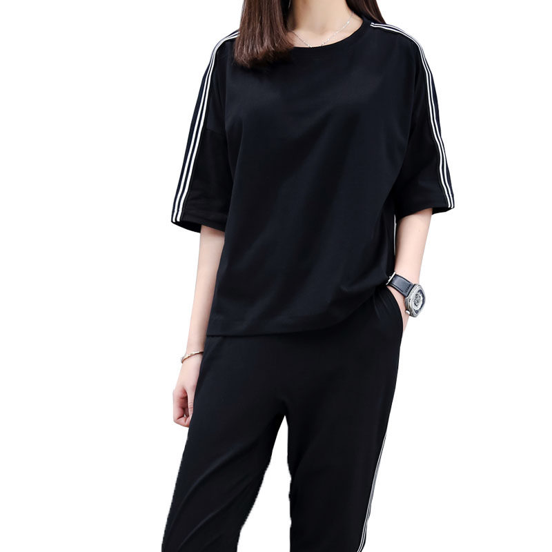 Hong Kong Short Sleeve Sports Casual Suit Women Summer Fashion Loose large size Chinese sleeves Fitness Clothing Tide Placard Pure Cotton Two Pieces