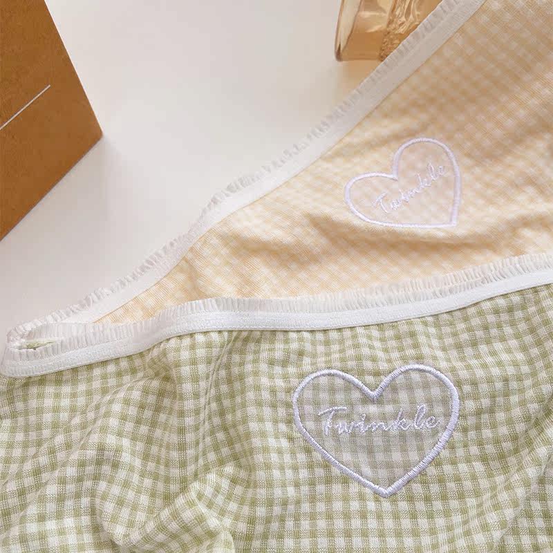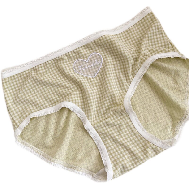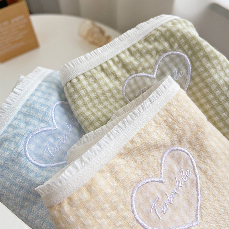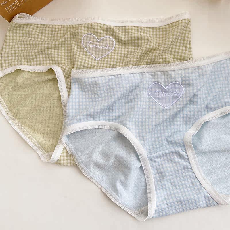 Love ~ simple love solid color women's underwear thin large size cotton crotch ladies briefs cute embroidered girls pants