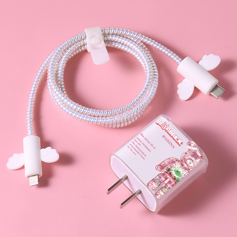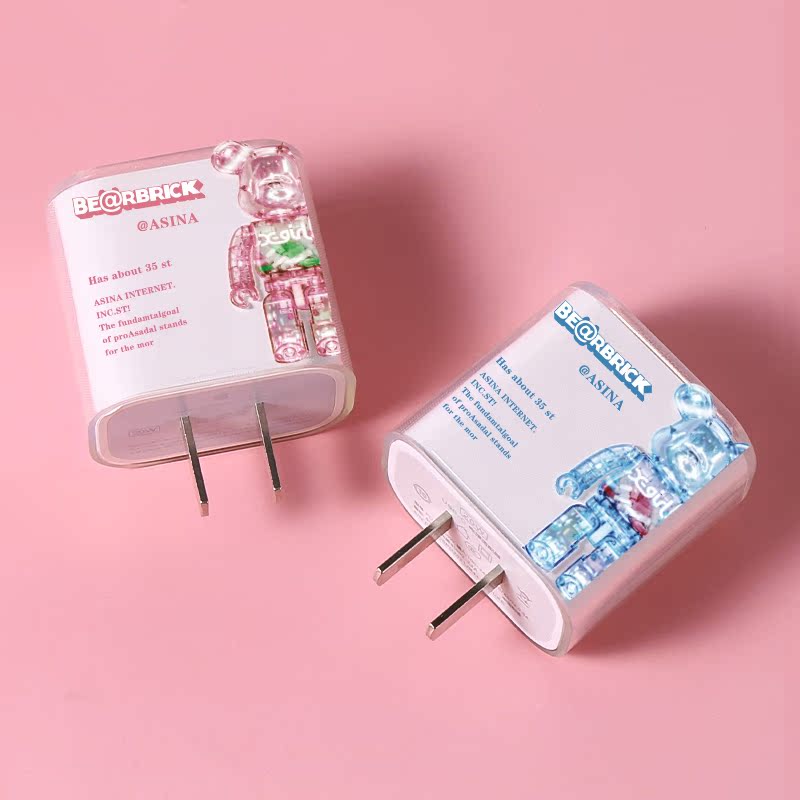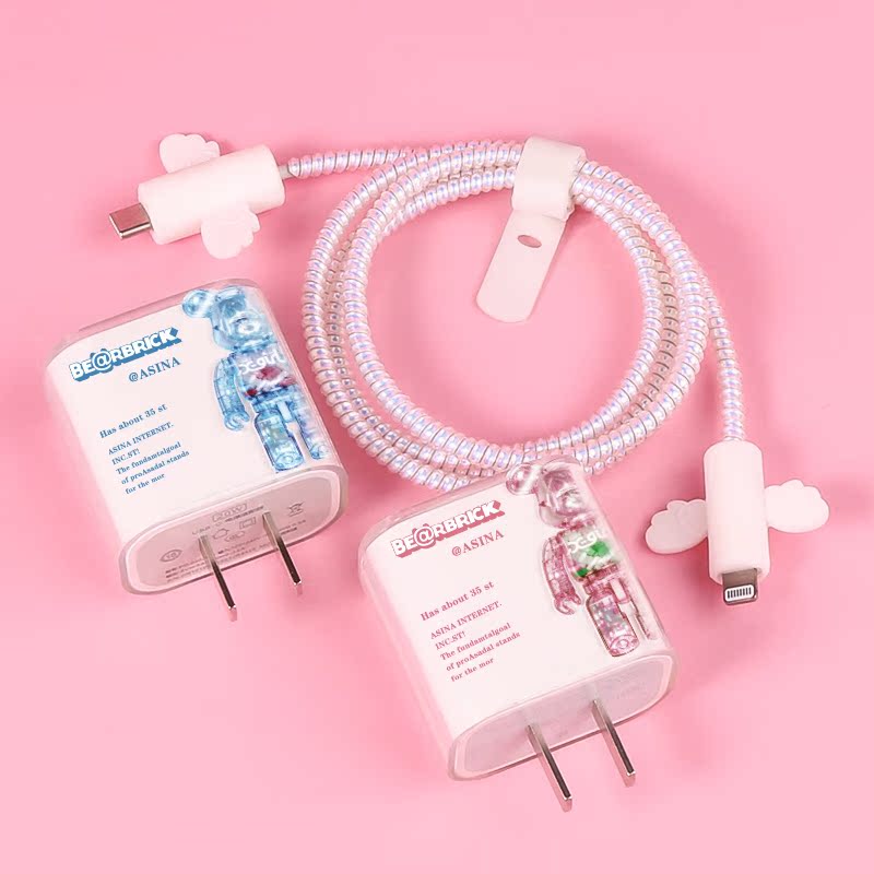 Apple charger cover 18 20W (transparent pink violent bear data line 4 pieces suit) Apple charger cover 18 20W (transparent blue violent bear data line 4 pieces suit)