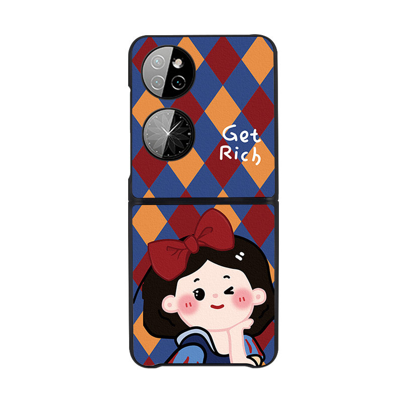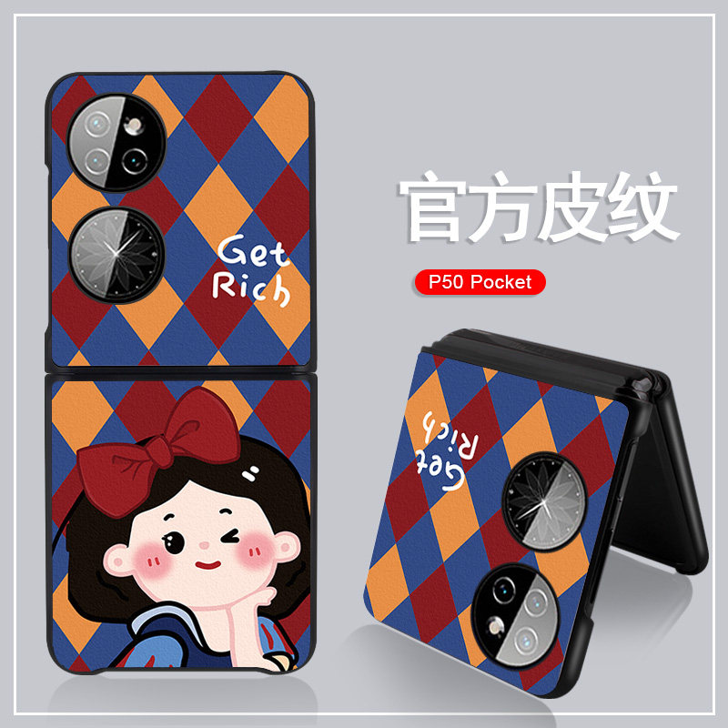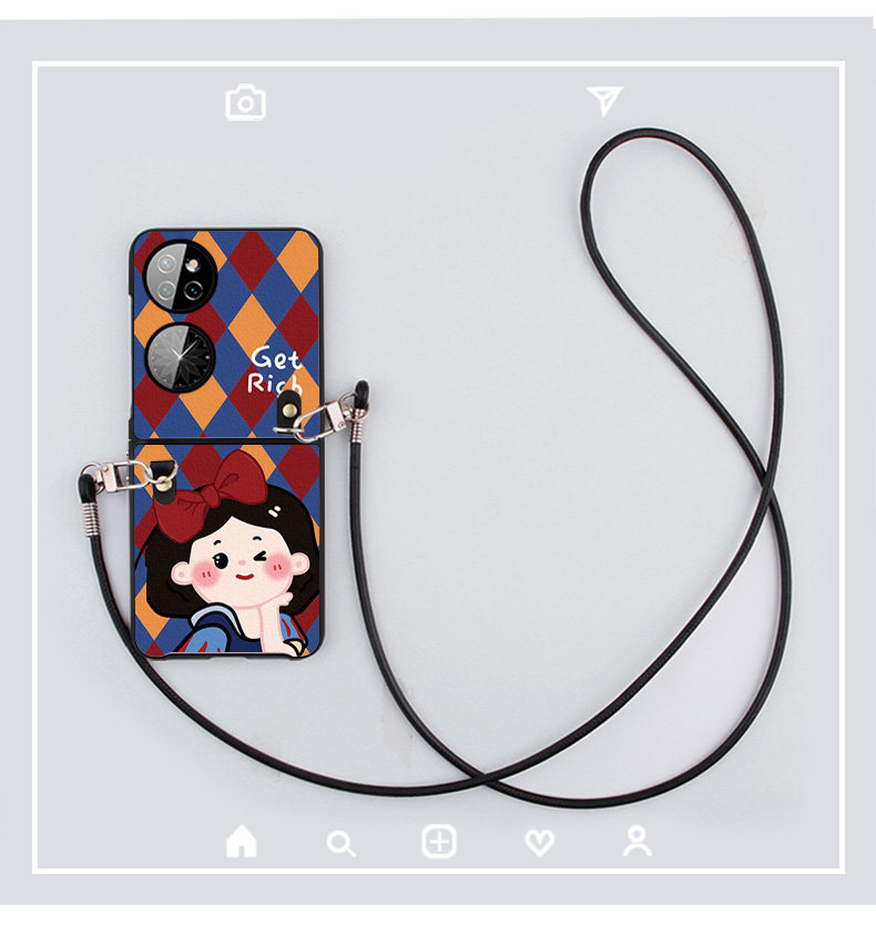 Princess Lingge Applicable to Huawei P50 Pocket phone protective shell Personality Protective Sheath Pleaser Folding Screen Leather Thread Hanging