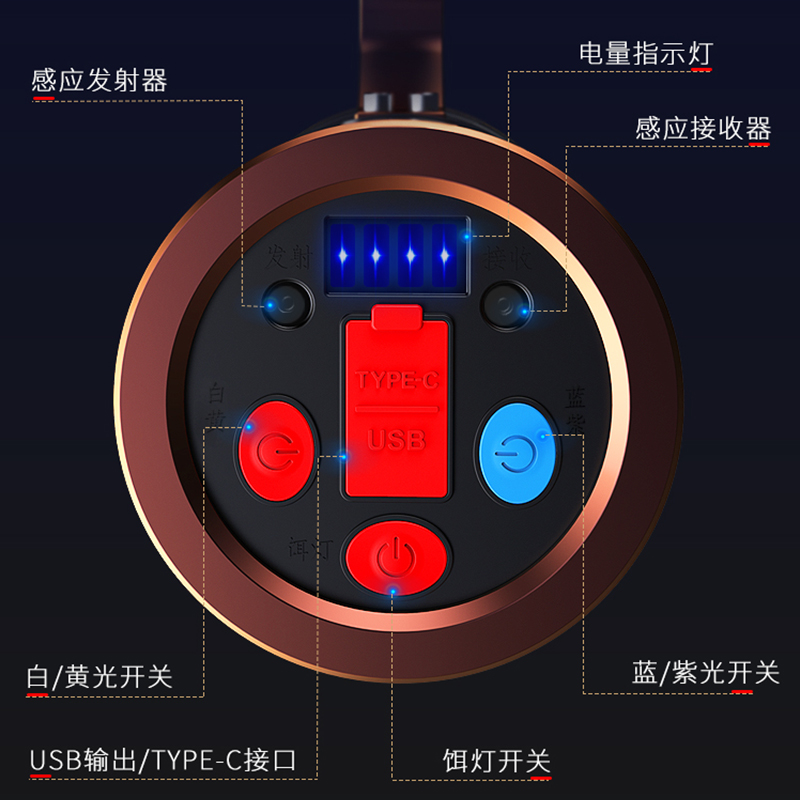 Night fishing lights laser cannon fishing special high-power glare ultra-bright blue light Taiwan fishing black pit equipment xenon wild fishing lights