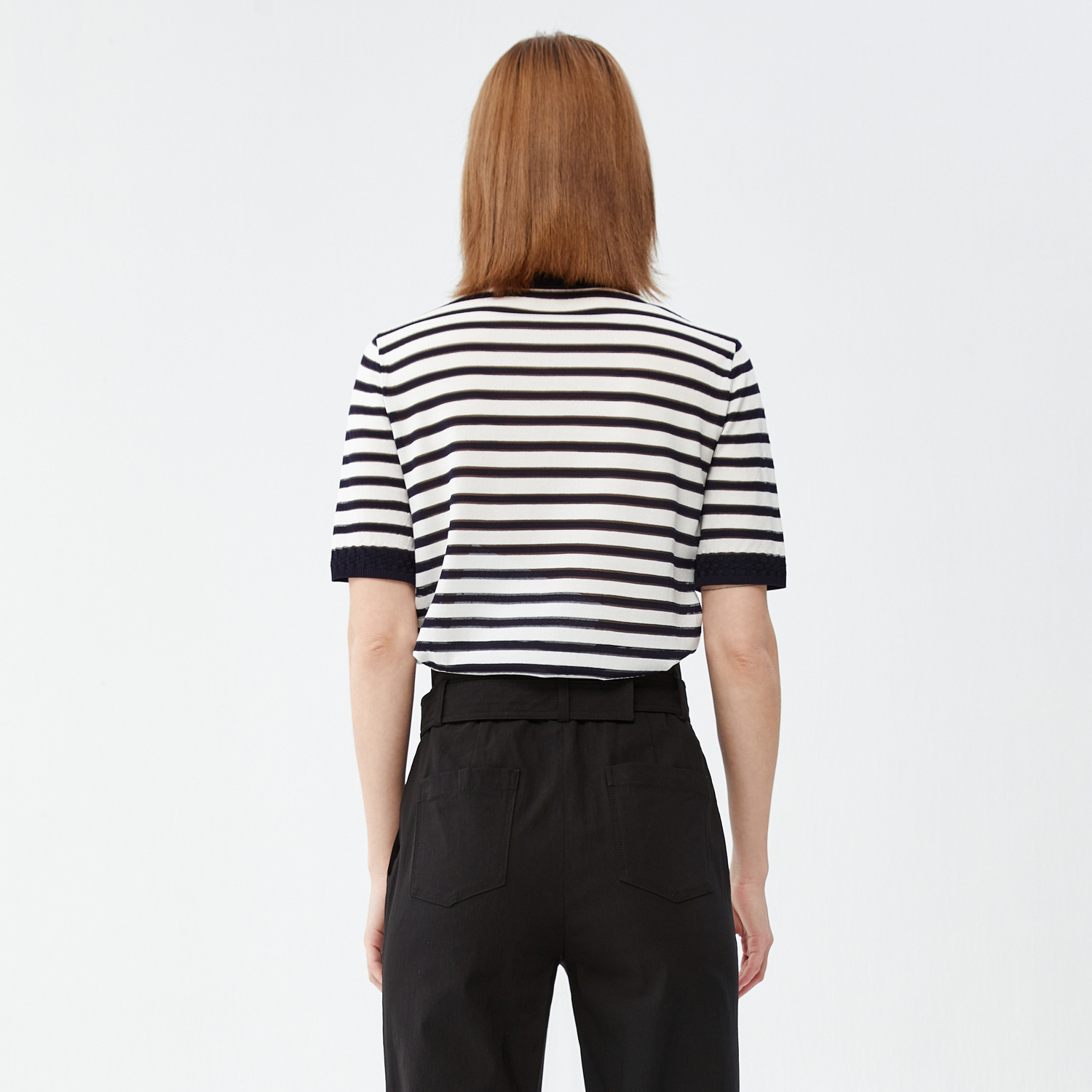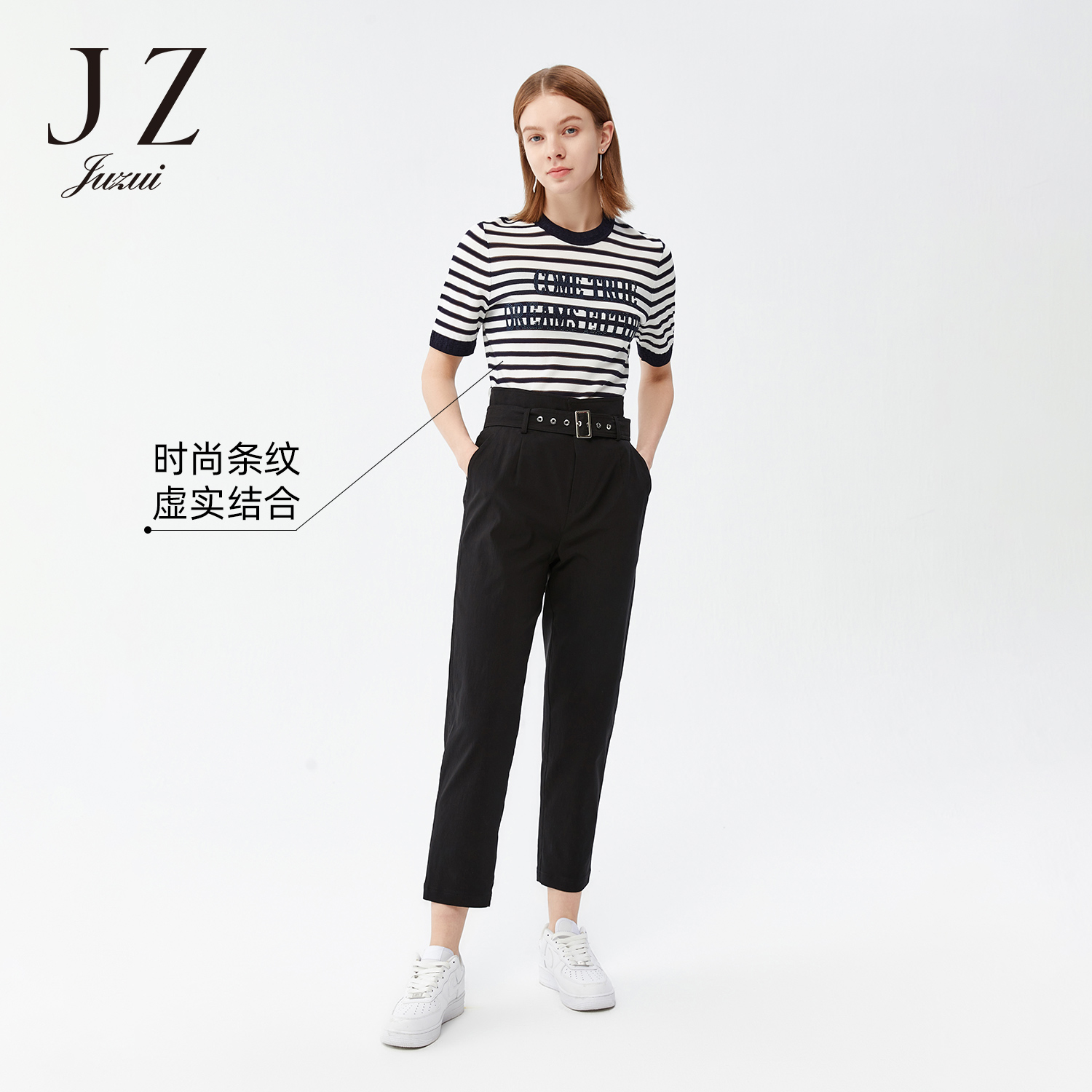 JZ Jiu Posture Striped Short Sleeve T-shirt Sea Soul Shirt Woman 2022 Summer round collar bronzed with letter cool Knitted Cardigan
