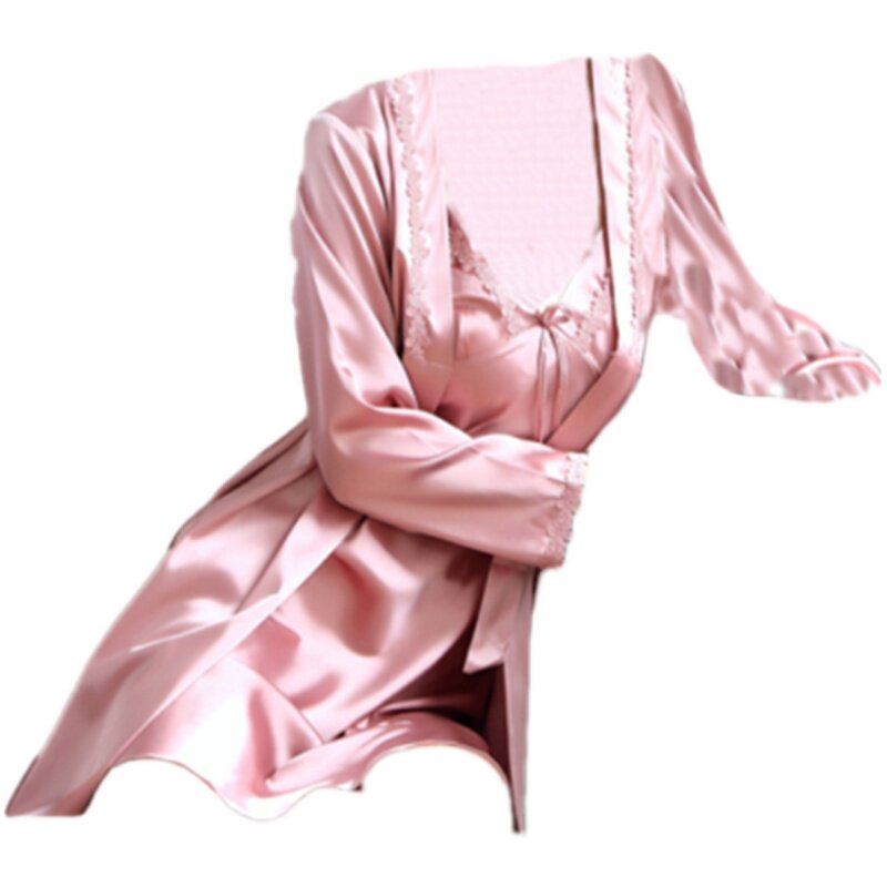 Advanced Sexy Harness Real Silk Pyjamas Women's Summer Delivery Thin Ice Silk Apricot Pink Ink Fairy Wind Long Sleeve Sleeping Robe