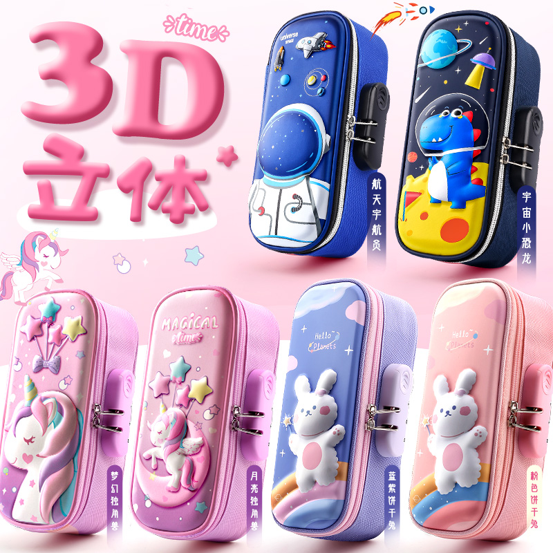 Lead pencil case with password pencil case with lock, large capacity 3D for elementary school students, 3D pen bag girl kindergarten Children's cute ins girls big number girl with 2021 pop new gift