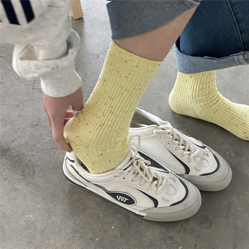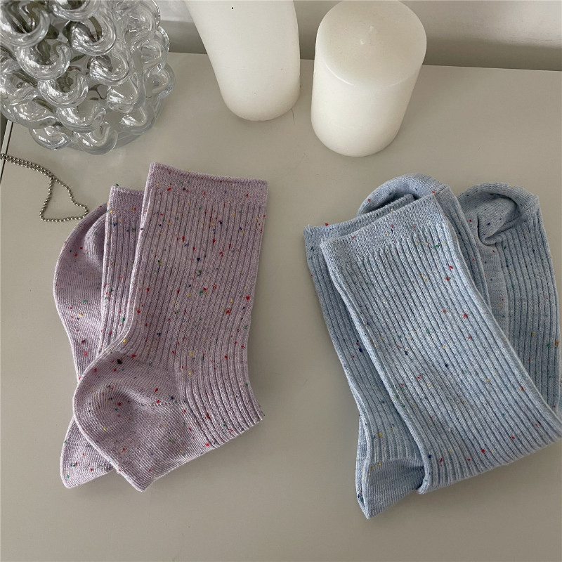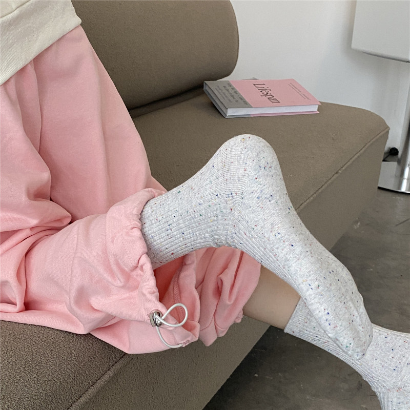 Cream Ice Sand ~ Adolescent Girl Fine Strips Socks Women's Ideas Yarn Pure Cotton Middle Stockings Pure color Candy Color Bubble Socks Cotton Socks