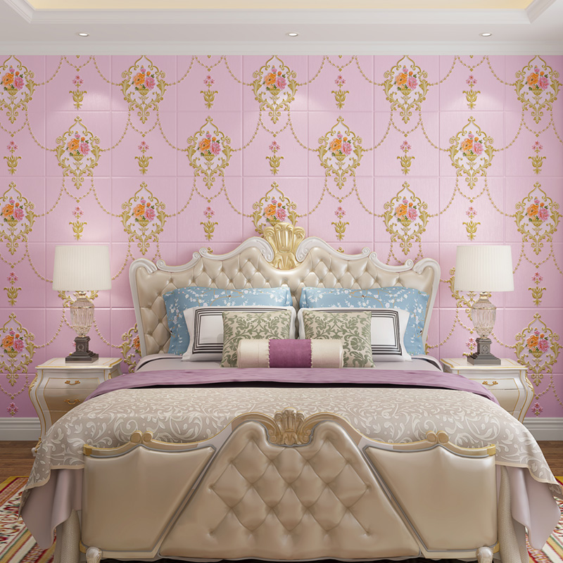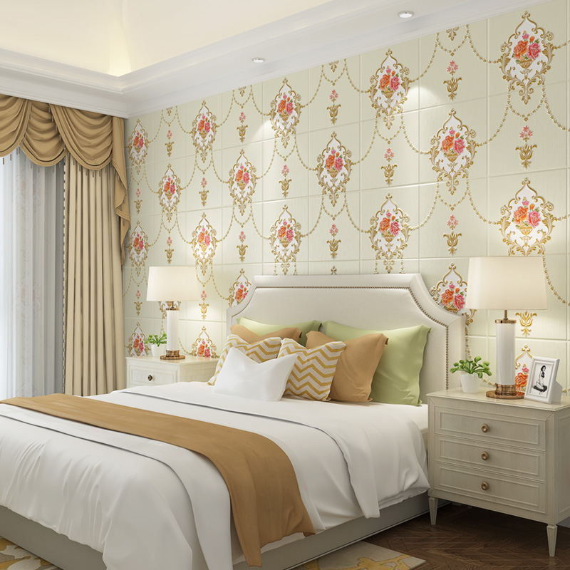 European-style light luxury wallpaper self-adhesive 3d three-dimensional wall stickers waterproof and moisture-proof bedroom living room TV wall warm decorative wallpaper
