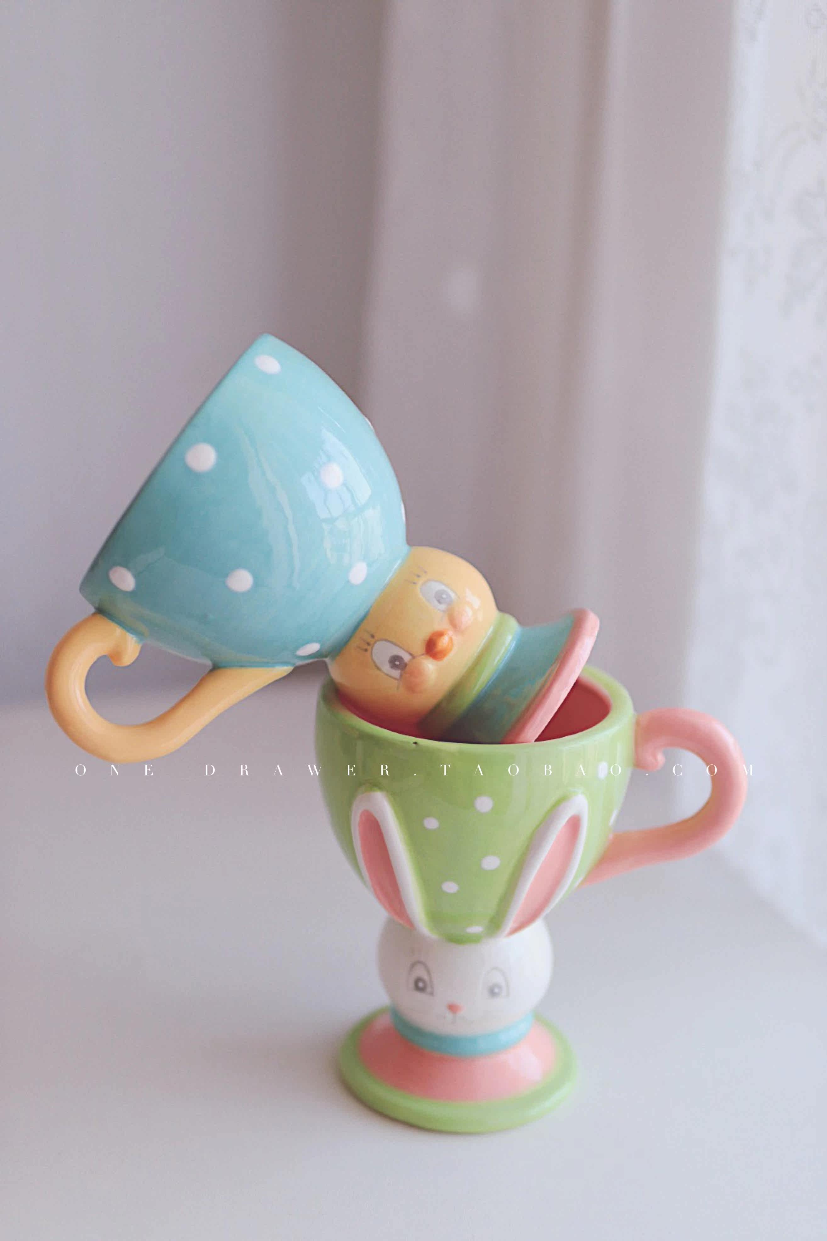 "One Drawer" Wave Dot Cartoon Rabbit Small Duck Ceramic Mark Water Cup Birthday 61 Children's Day 61 Gift