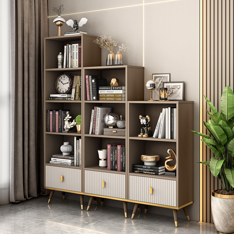Three-story bookcase (champagne curry) self-fitted with four-layer bookcase (champagne curry) itself fitted with five-story bookcase (champagne curry) itself fitted with three-storey bookcase (Athens white) itself fitted with four-story bookcase (Athens white)