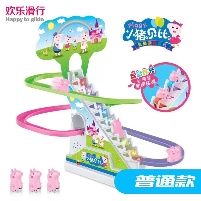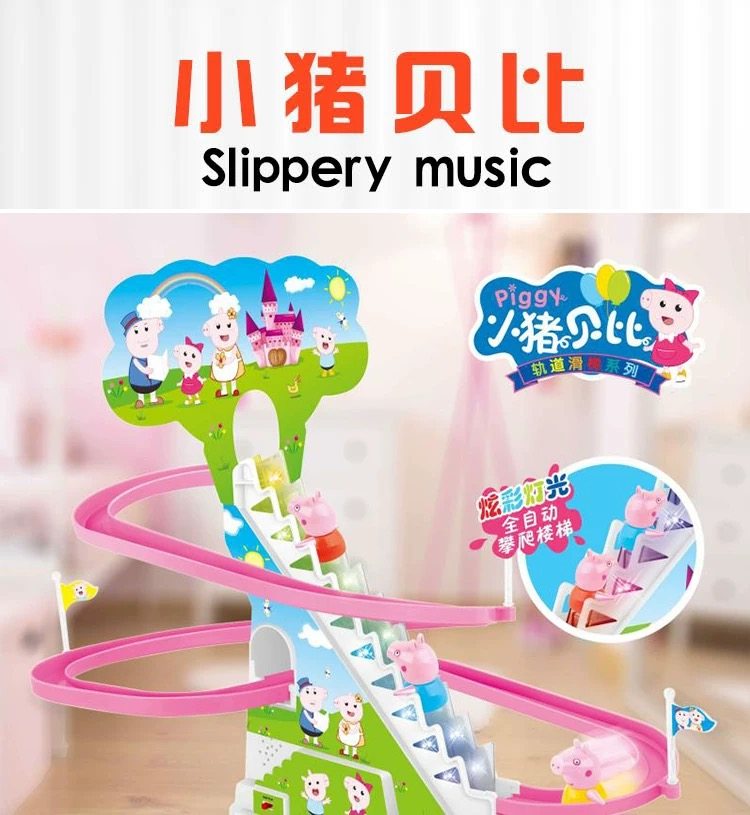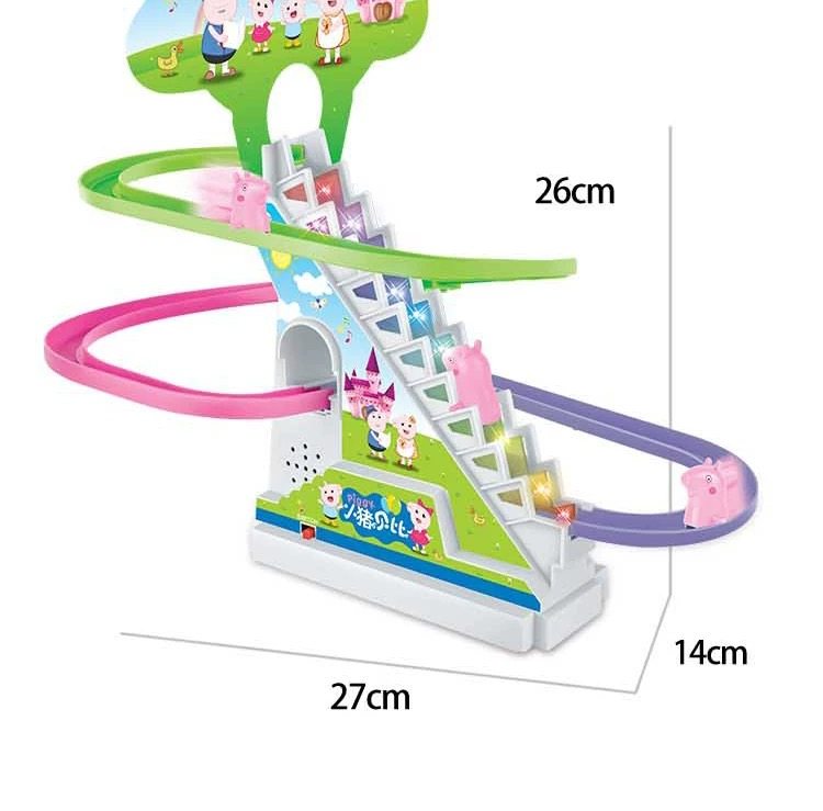 Small Pig Climbing Stairs Light Music Track Pink Pig Electric Track Children's Night Market Stalls Hot Selling Toys