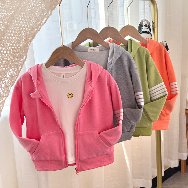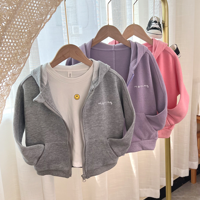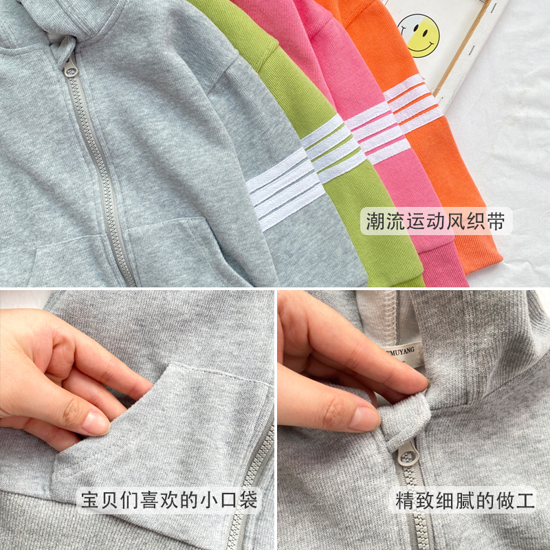 Girls' coat spring and autumn 2022 foreign style men's and women's baby zipper clothing sports hooded coat for children's casual tops