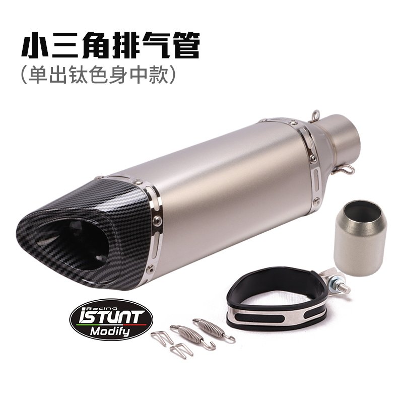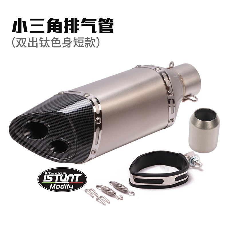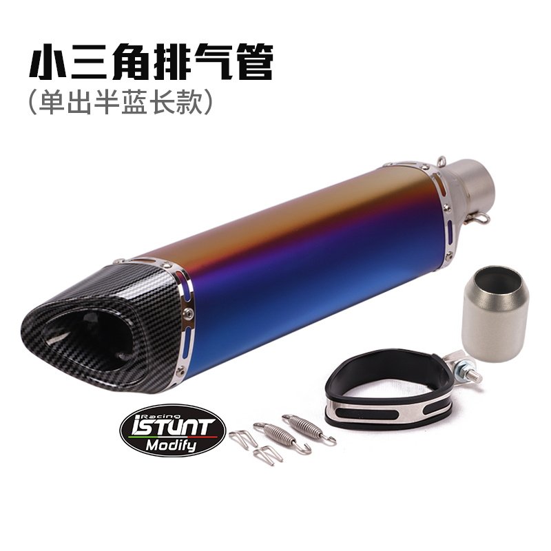 Small triangular exhaust pipe (double out half blue short) small triangular exhaust pipe (double out of titanium colour body short) small triangular exhaust pipe (double out black body short) small triangular exhaust pipe (double out of imitation carbon fiber short) small
