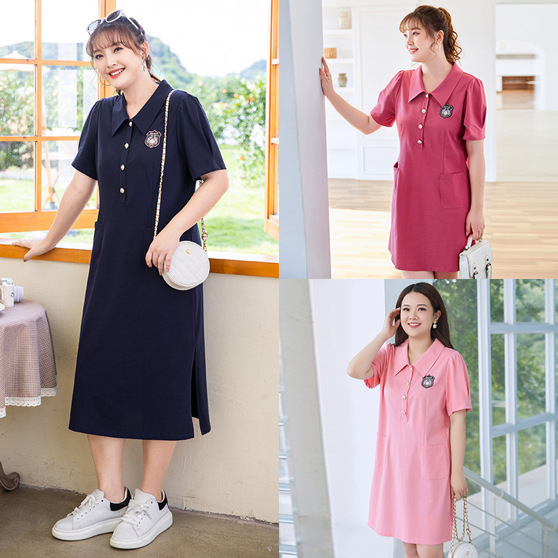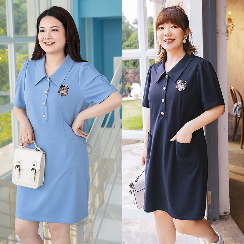 MsShe Great Size Women Dress 2022 New Summer Fat Mm Foreign Dress College Wind Age Polo Skirt Woman Short Sleeve