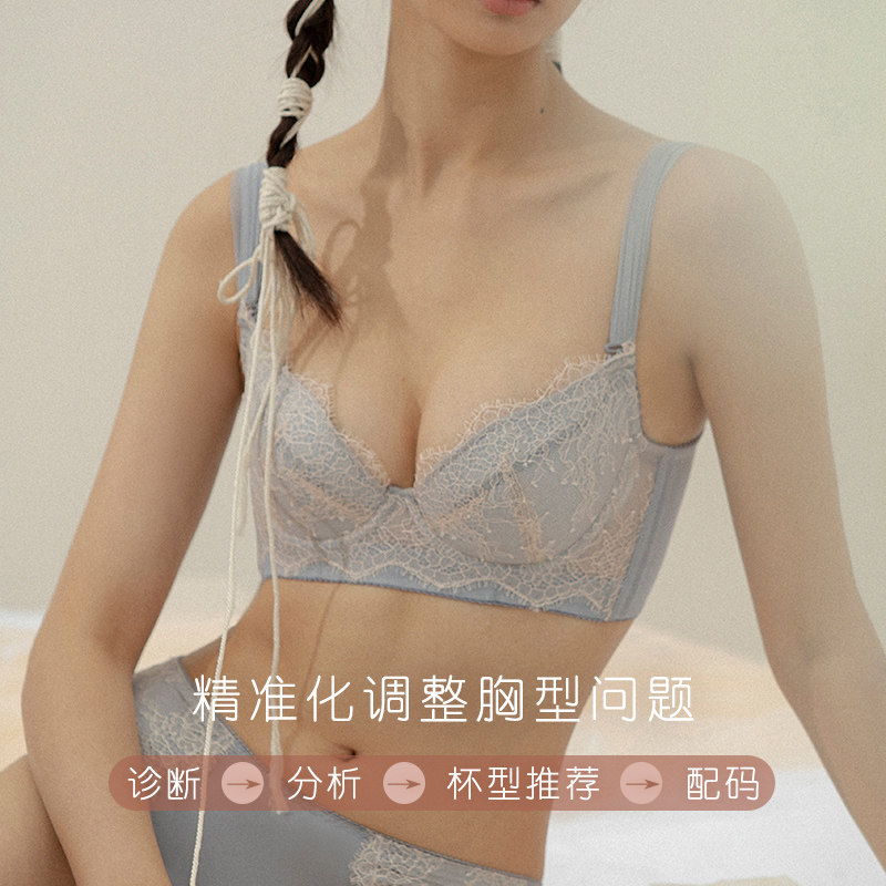 The heavy underwear woman gathers adjusts underwear to collect the breast and the lace outside the pressed gold lash lace