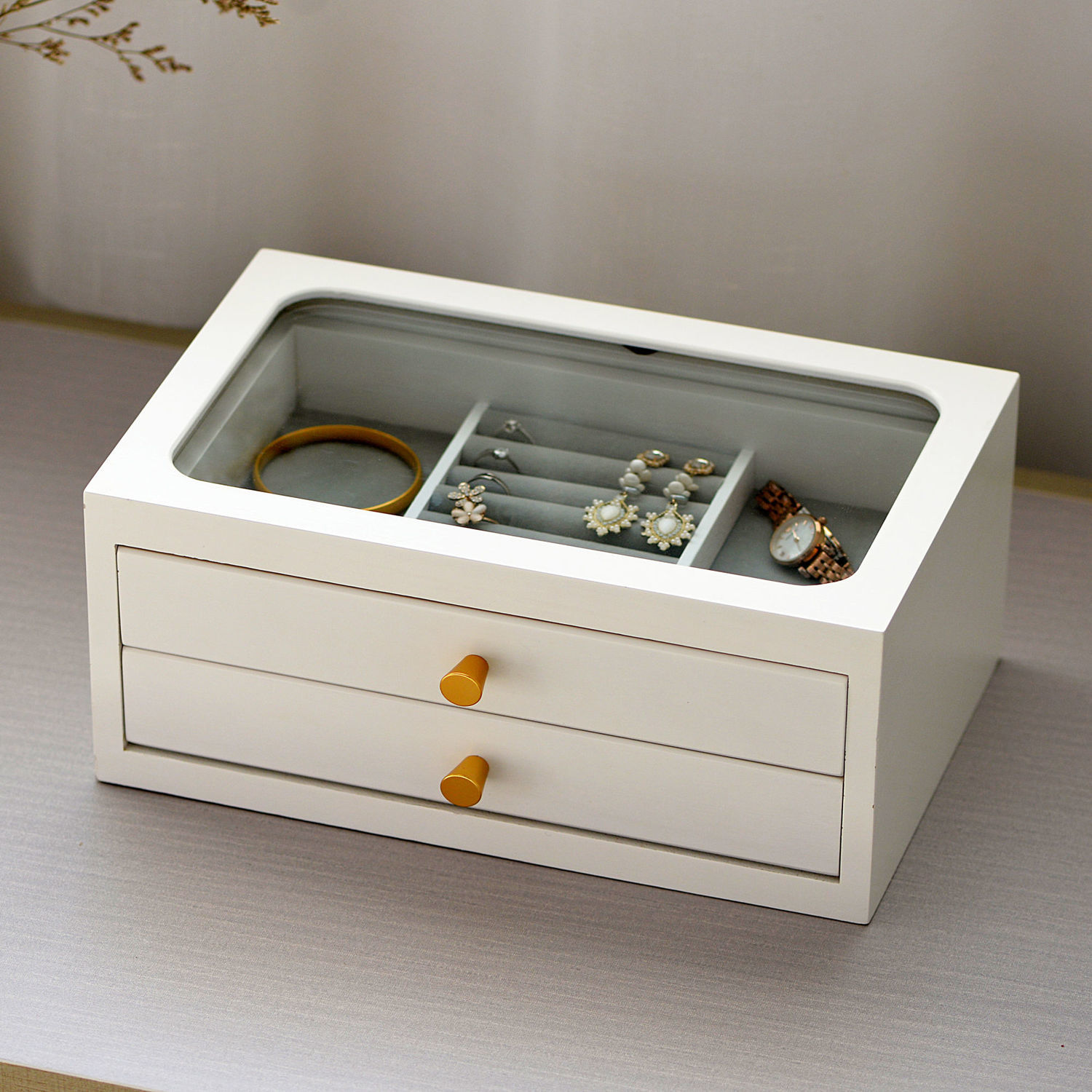 Walnut wood jewelry box large capacity home high-end jewelry transparent wooden multi-layer drawer net red jewelry storage box