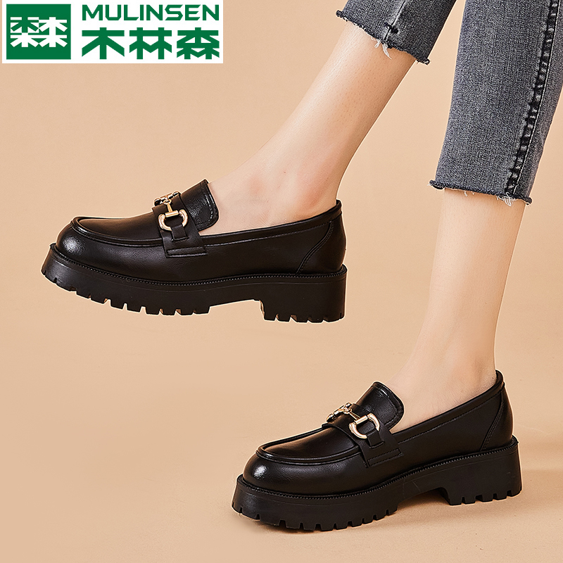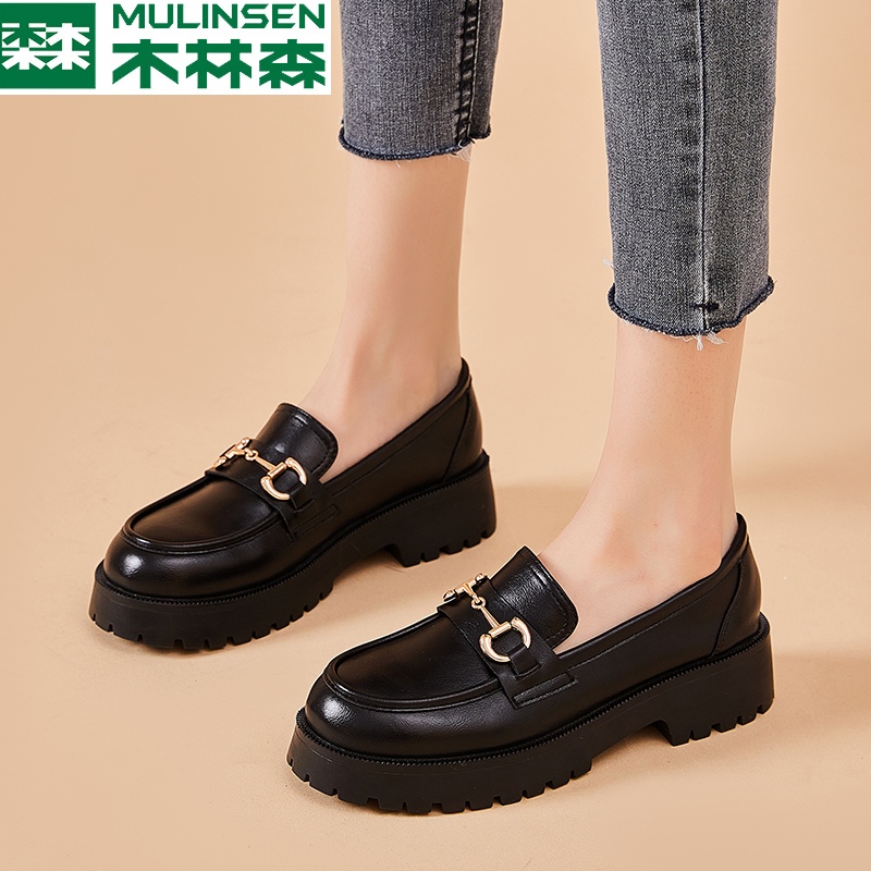 Wood Linson Lerfoo Shoes Women 2022 New Spring Retro Black Thick Bottom Small Leather Shoes A foot pedal Soft leather Single Shoe H