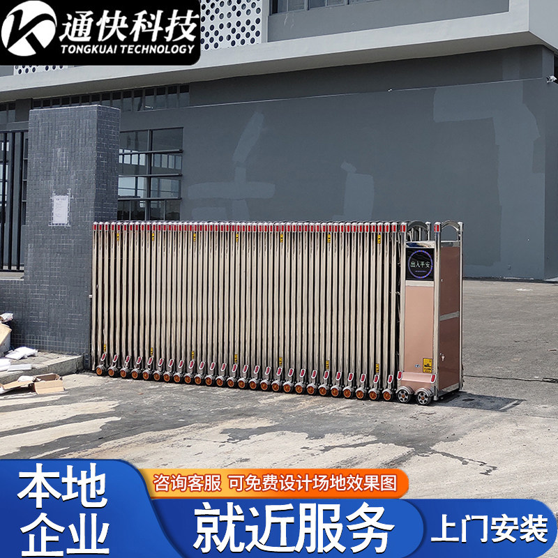Stainless steel electric telescopic door remote control automatic community factory school push pull aluminum alloy folding courtyard door