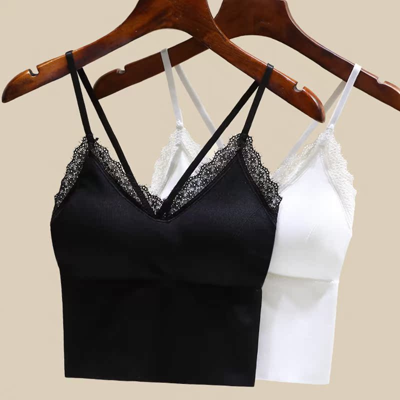 Lace camisole women's inner strap chest pad gathered sexy V-neck summer tube top underwear beauty back net red hot style