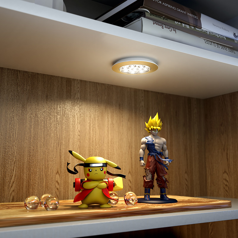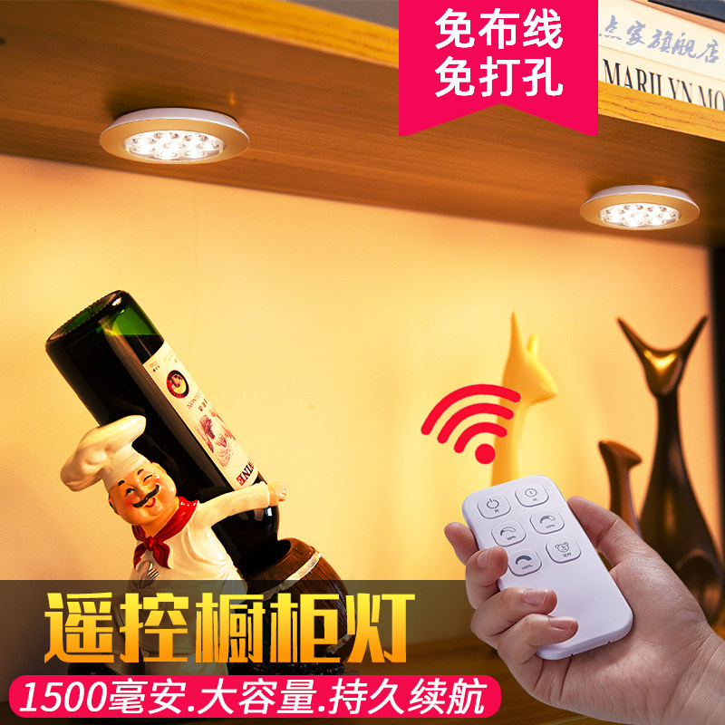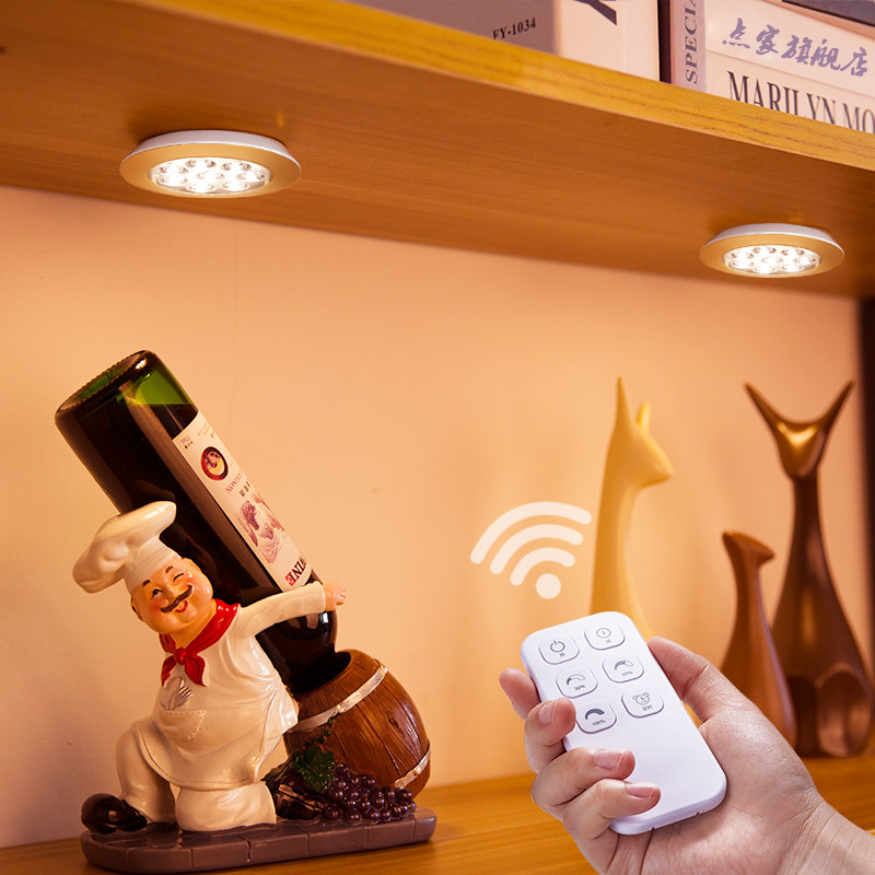 Wireless round remote control led paste rechargeable wardrobe wine cabinet bookcase model display cabinet whole cabinet kitchen spotlight