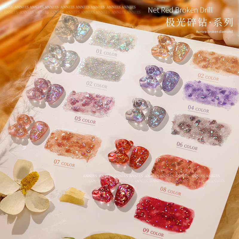 Ennée Poetry 2022 New Popslight Therapeutic Gel Netting Red Super Shiny Extremely Light Crushed Drills Nail Polish Nail Polish Glue Medecine special