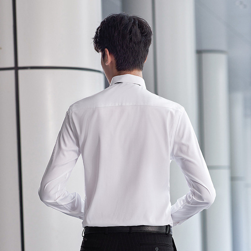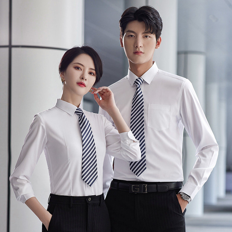 Men and women in the same shirt blue shirt female long sleeve bamboo fiber shirt work clothes formal embroidery logo