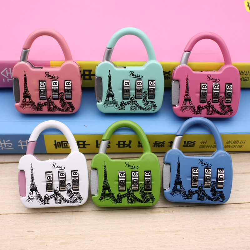 Cartoon 3 small padlock colorful pull chain lock shoulder bag password lock portable outdoor travel alloy burglar-proof tool