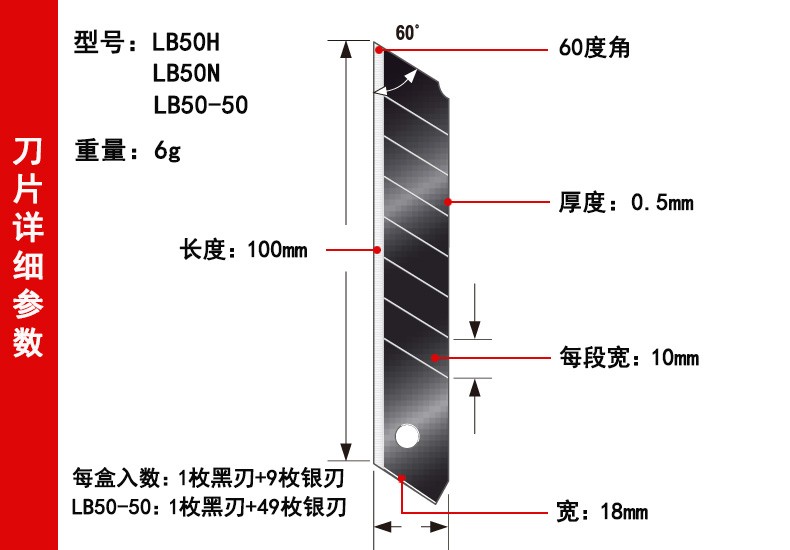 Blade LB50H 18mm large number beauty artificial knife sheet cut paper knife sheet wallpaper blade