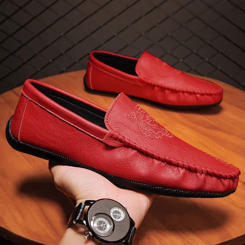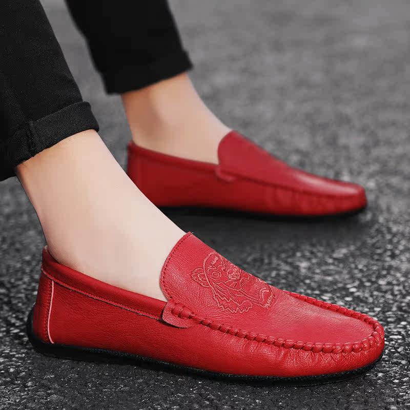 This Life Year Red Bean Shoes Men Spirit Little Guys Genuine Leather Casual Leather Shoes Breathable soft-bottom One foot pedal Driving shoes