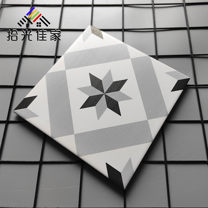200 * 200 retro small flower brick light grey dining room Makeup Room Non-slip Floor Tile Bathroom Milk Tea Shop Ground Tile