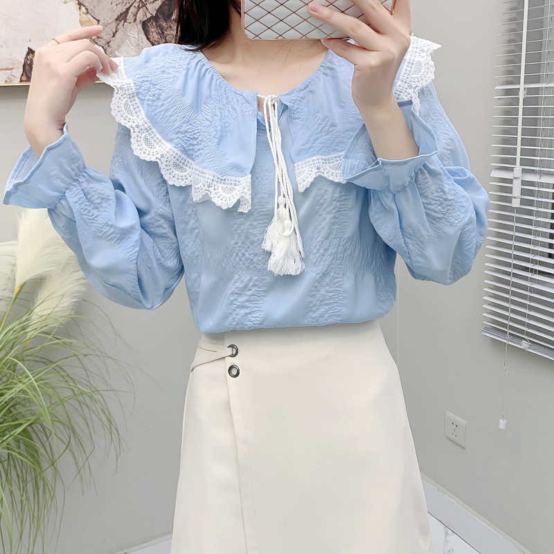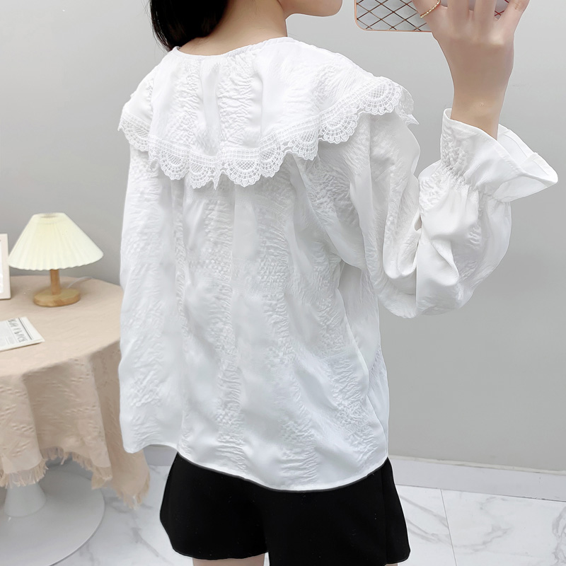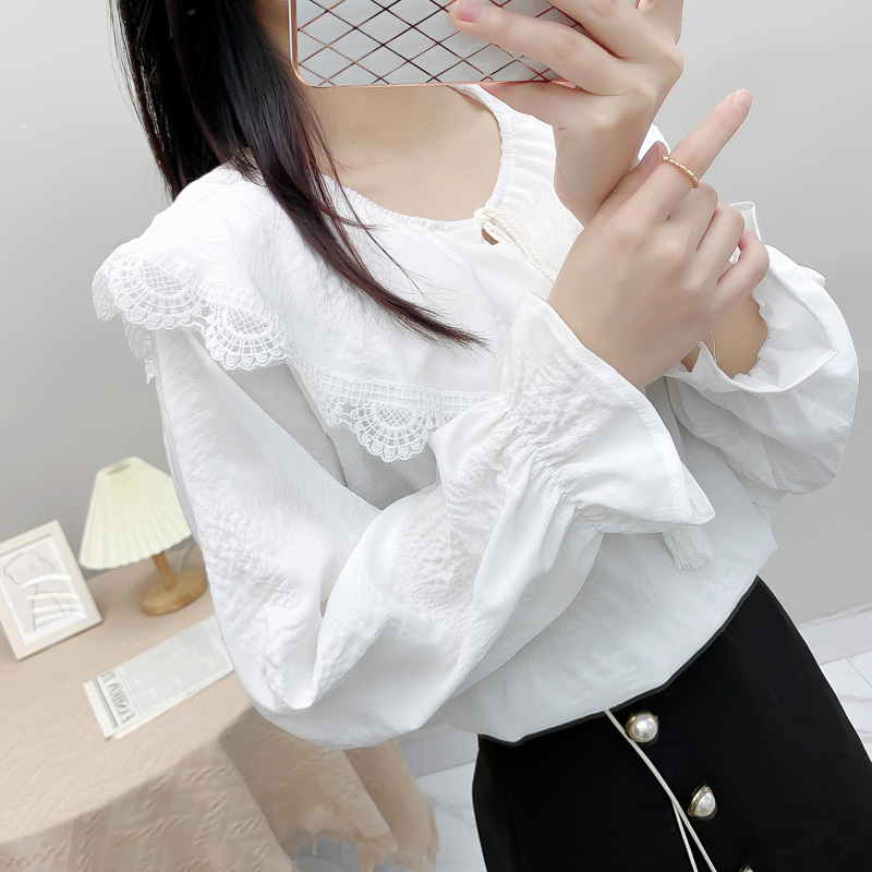 Snowspun Shirt Design Sensation Little Crowned Spring 2022 New Lace Dolls Collar Blouses Looser Foreign Pie 100 Hitch Undershirt