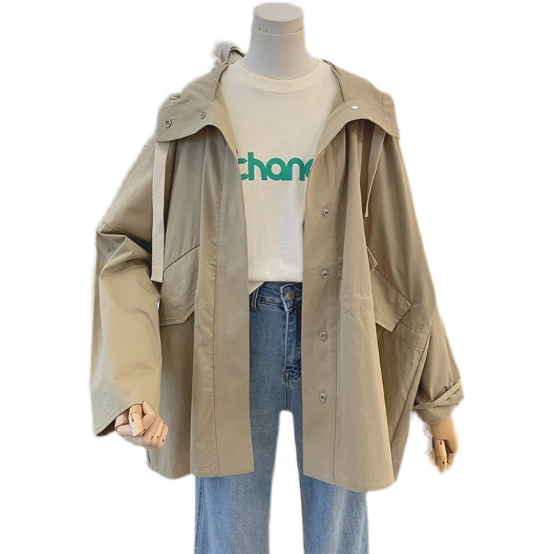 Lolora Lian Hat Windcoat Jacket Woman 2022 Spring new Korean version loose Long sleeves Short jacket Outside Wearing Tide