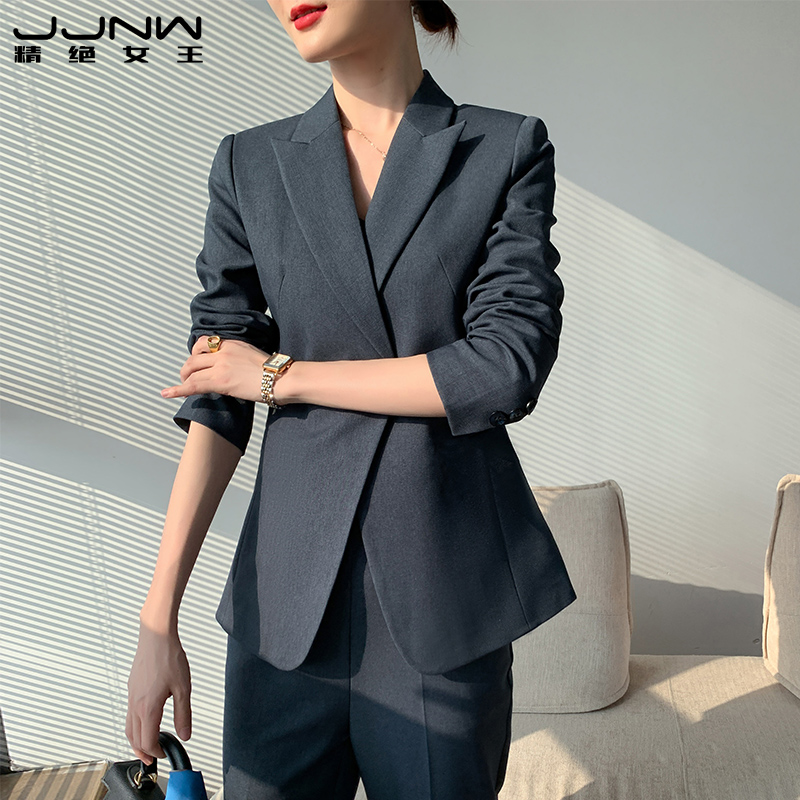 Gray work clothes suit women's 2021 new autumn and winter work clothes women's professional temperament waist slim slim suit