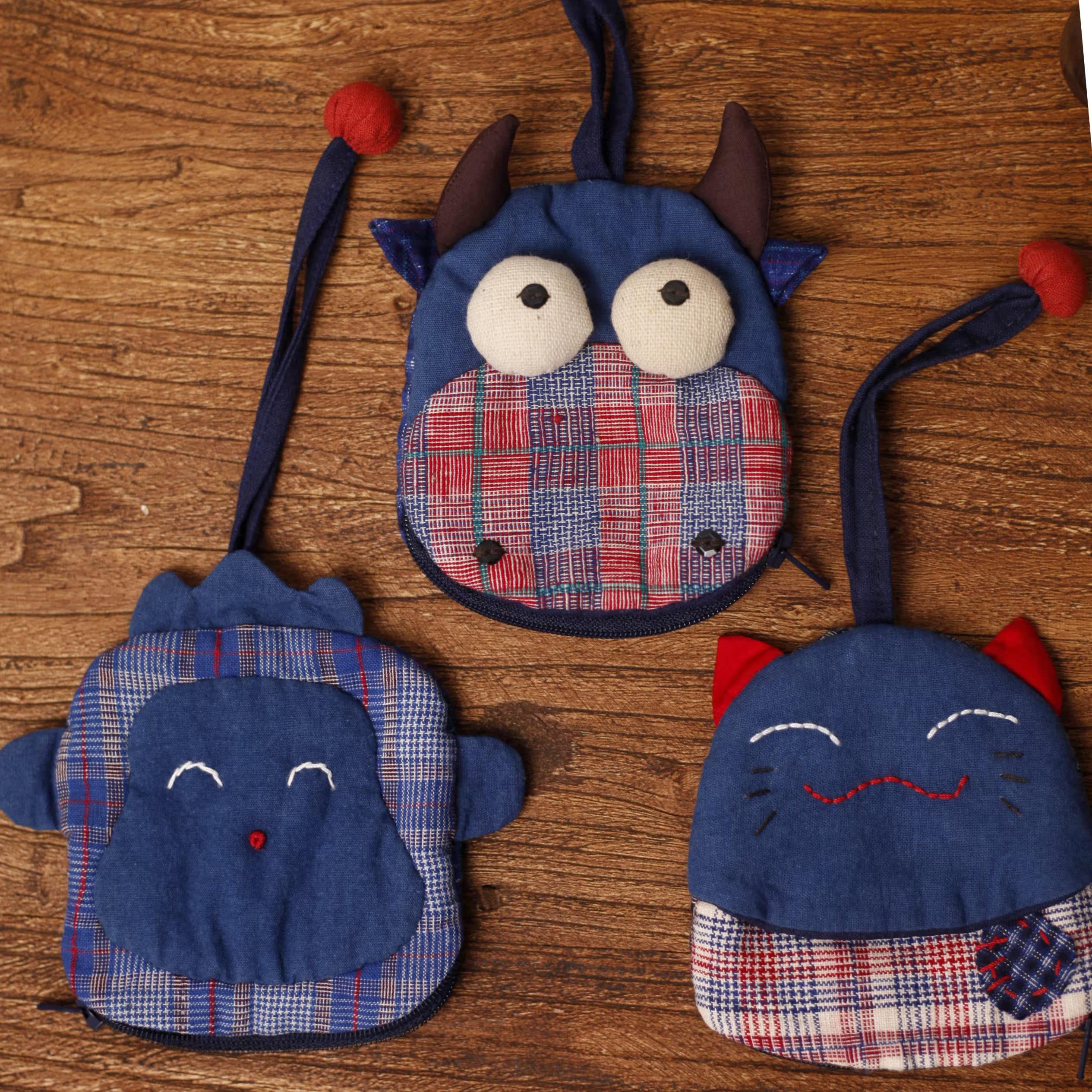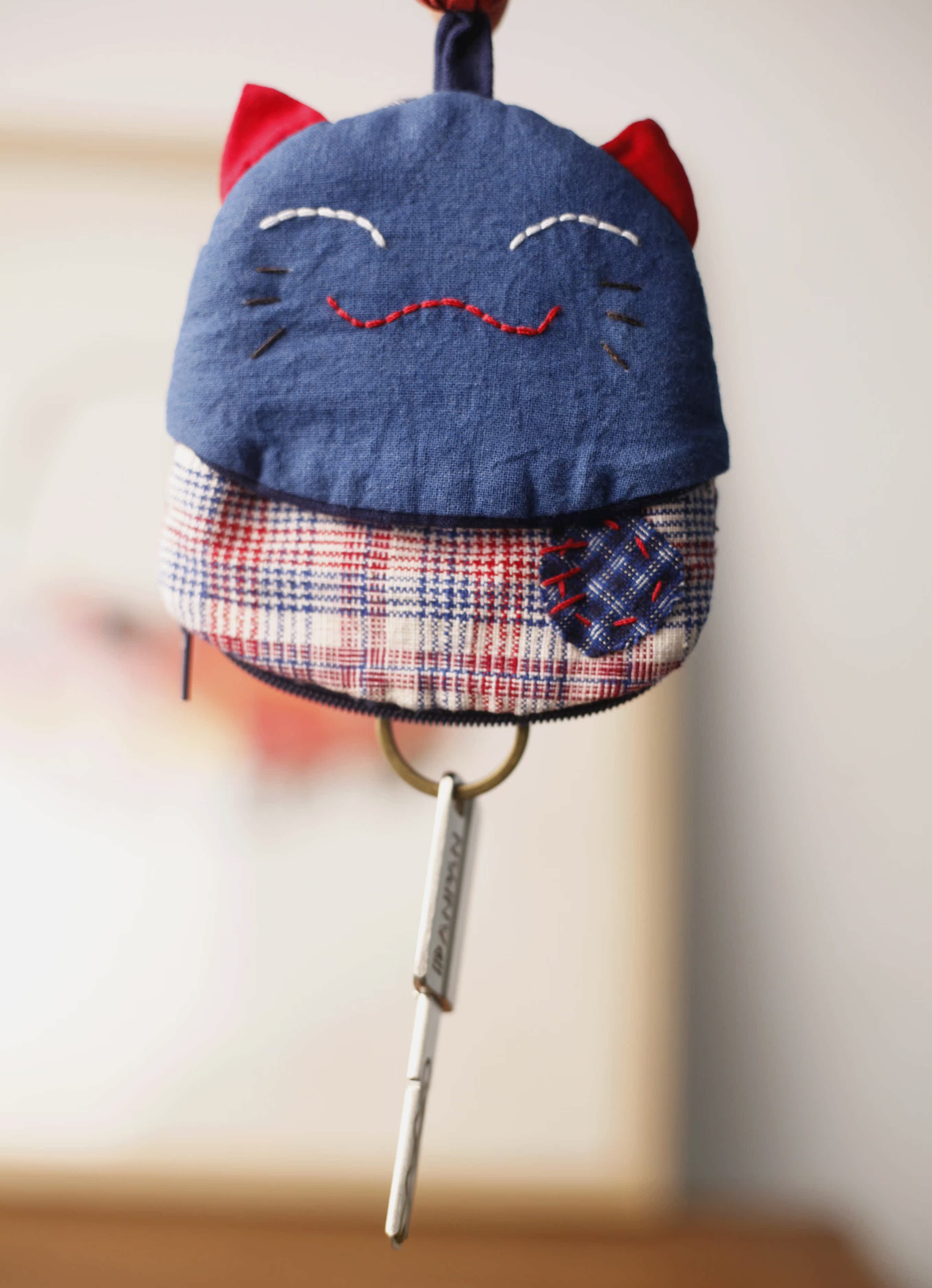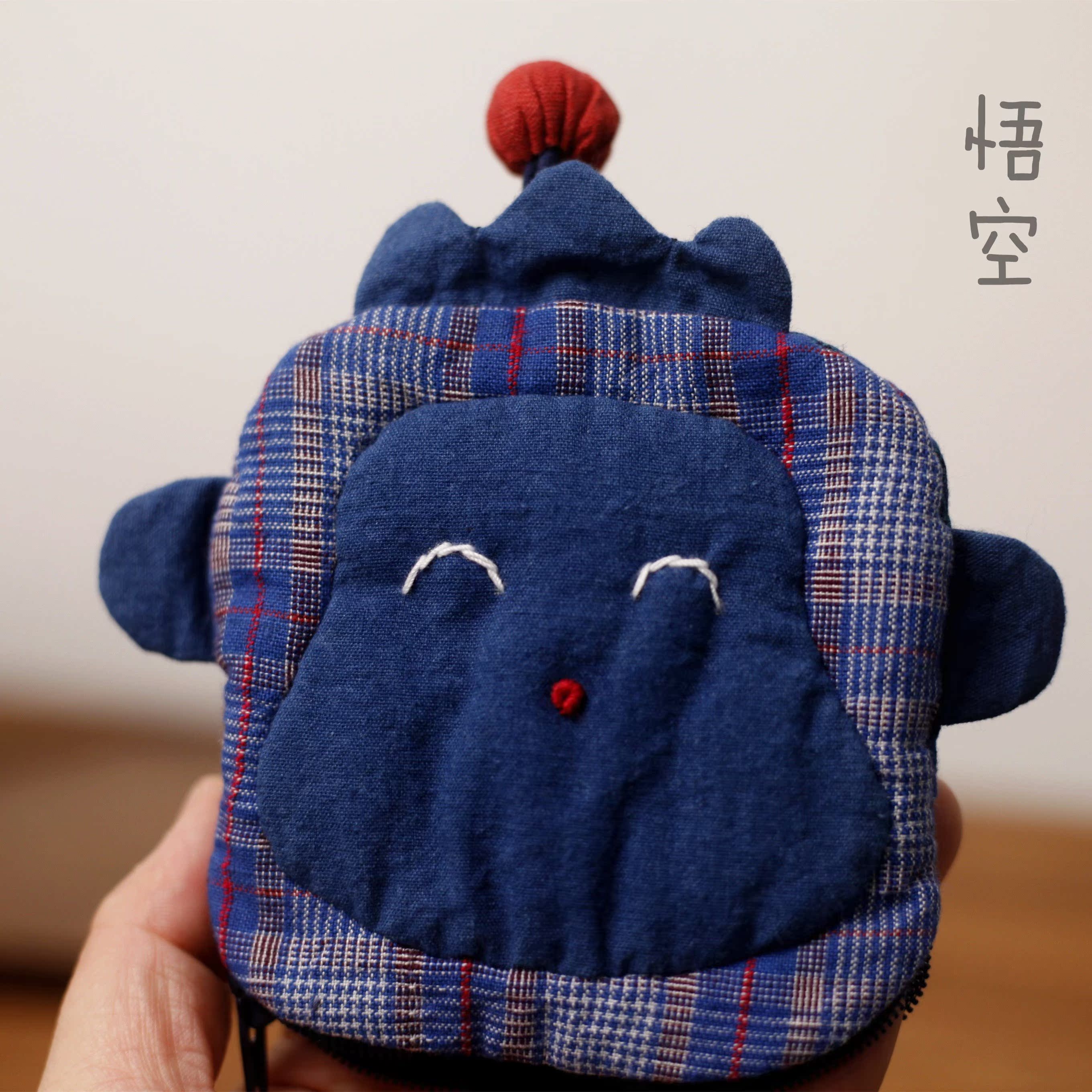 Cloth Key Pack Creation Cartoon Pure Cotton Hand Knitting Cute Blue Paste Specification Embroidery Tide Play Zip Card Pack