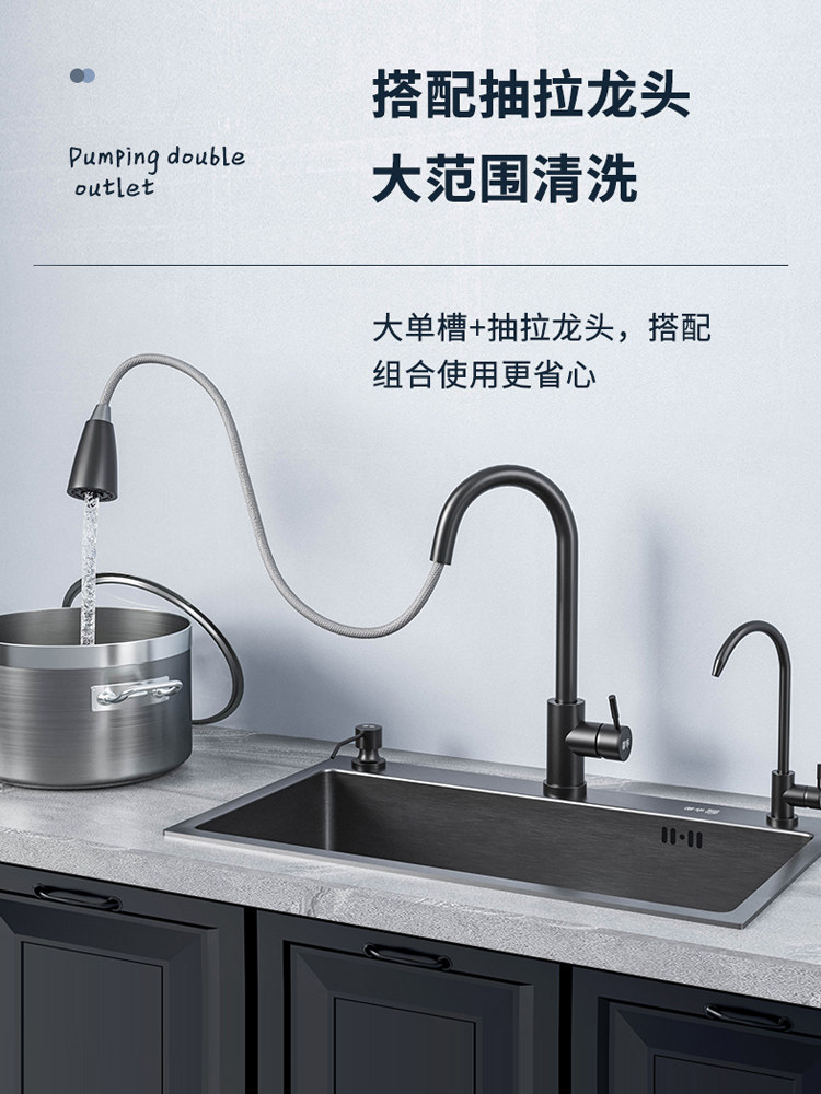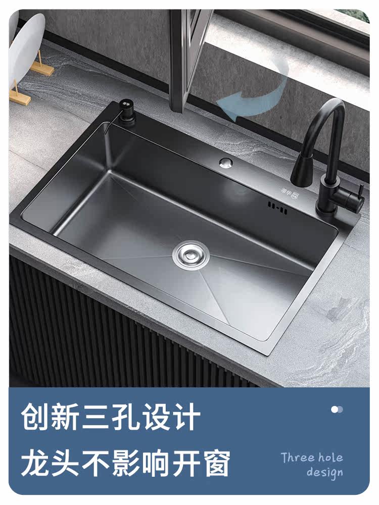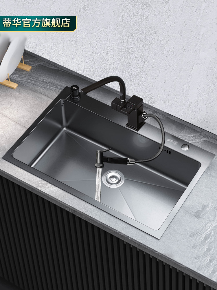 Tihua 304 stainless steel sink large single-slot kitchen washbasin washbasin black washbasin household under-counter basin