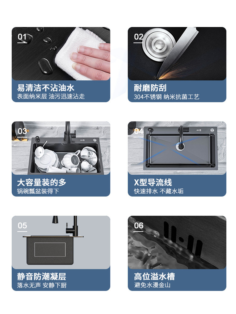 Black Nano 50*40-A package-no faucet Black Nano 50*40-B package-round faucet Black Nano 50*40-C package-square faucet Black Nano 50*4