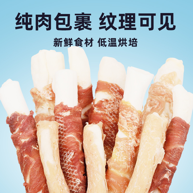 Chicken wrapped around milk-flavored skin rolls 6 puppies, mini-senior dogs (crisp, tough and easy to chew) Chicken wrapped around cowhide sticks 8 5 inch 2 small and medium dogs (tooth cleaning)