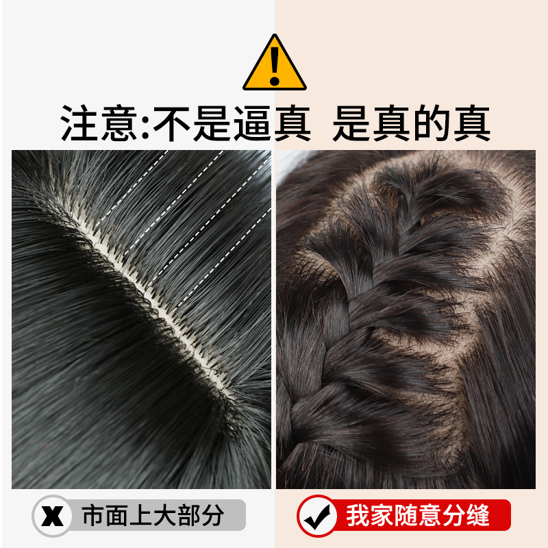 Wig-sheet female overhead Hair Covered Bald Top Real Hair Liu Hai Light Thin Natural Wig to cover white hair fluffy and free of marks-Taobao