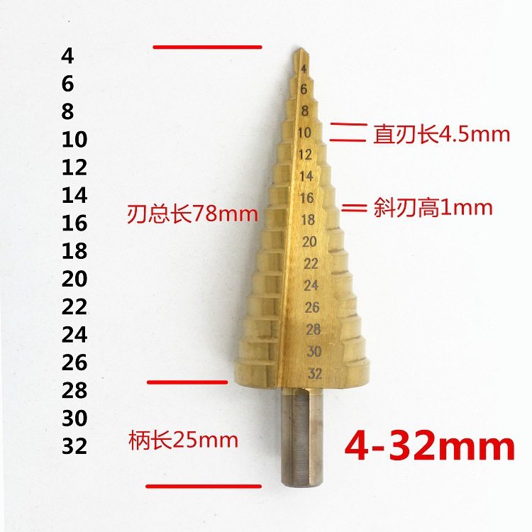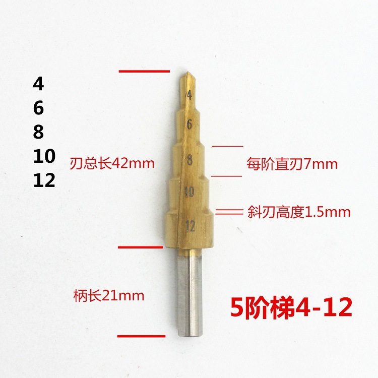 Triangular shank ladder drill 4-12 pagoda drill bit 20 steps drilling 32mm open reaming machine steel plate aluminum plate drilling hole