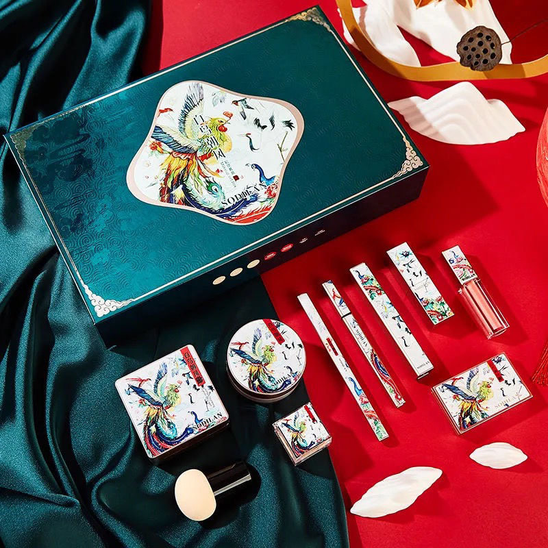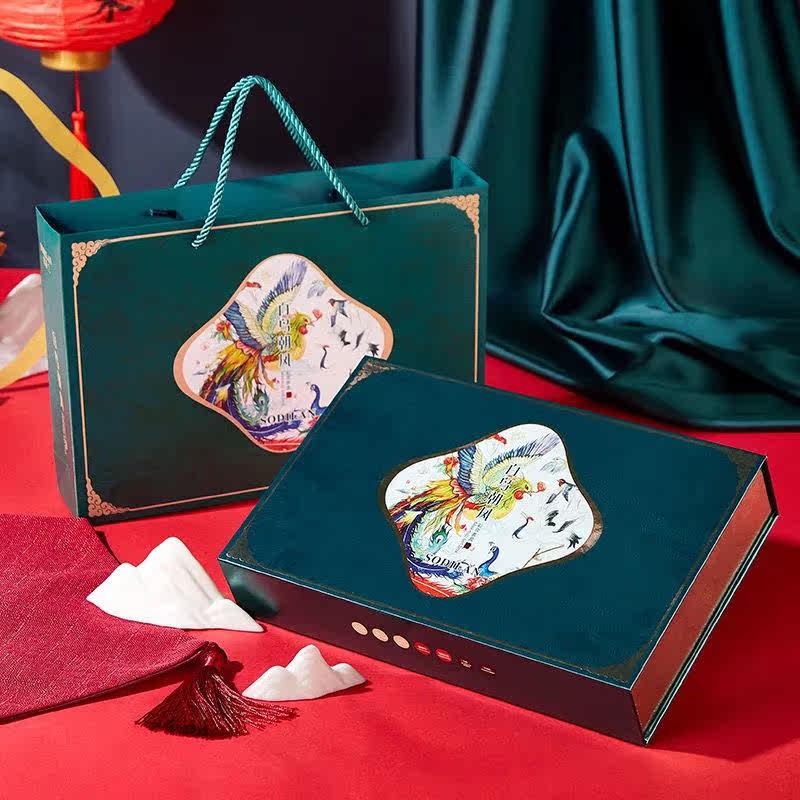 Hundreds of birds headed towards Fengshan (gift giving bags) Yunshan god shows a dozen sets of Jiangnan Southern Wind Eight Gift Suit Flowers and Colorful Makeup (gift giving bags)
