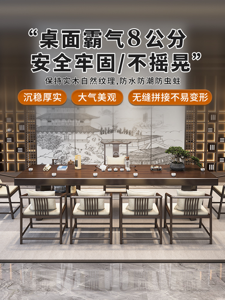 Solid Wood Tea Table New Chinese Meditation Tea Table Minimalist Modern Office Large Board Tea Table Living Room Guests Table And Chairs Combination