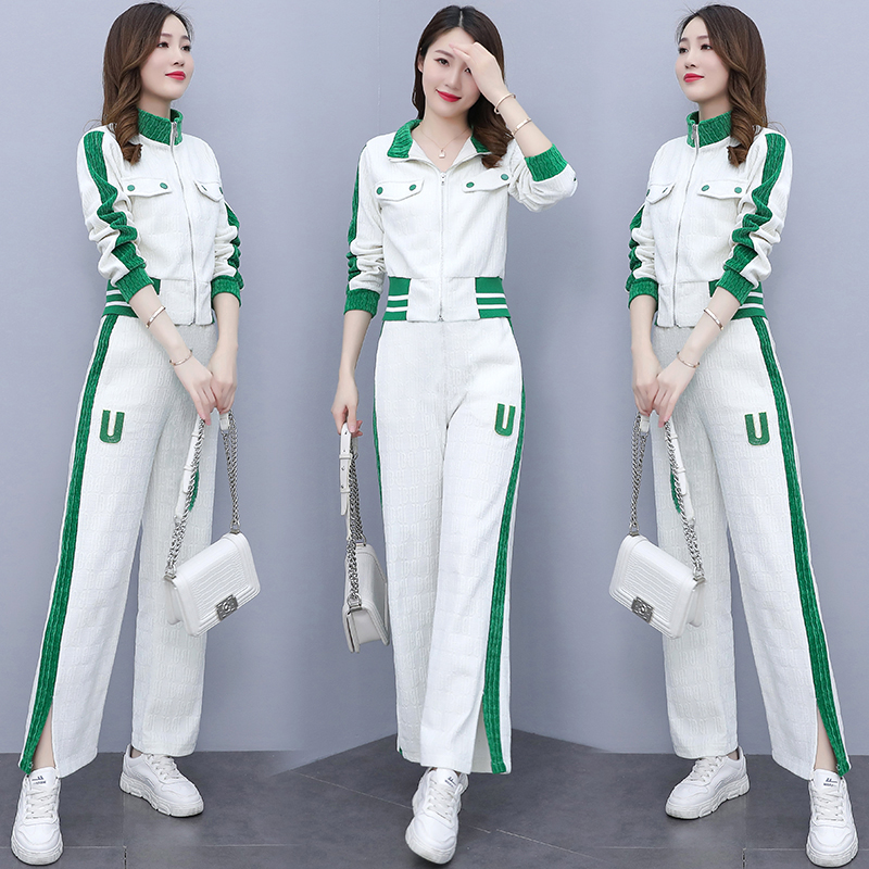Casual Sports Suit Women 2022 Spring Dress New Superior Sense Foreign Pie small Broadlegged Pants Fashion Two Sets Eben