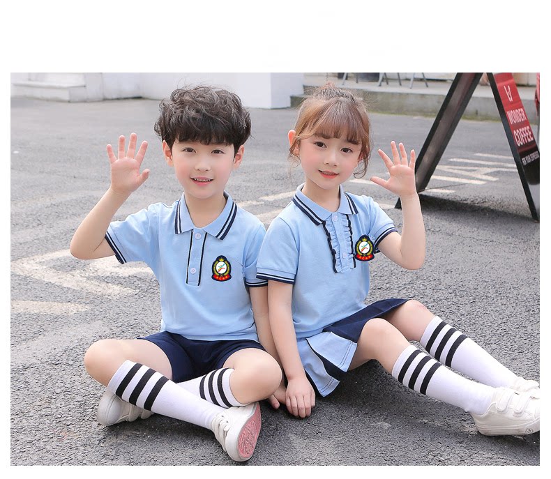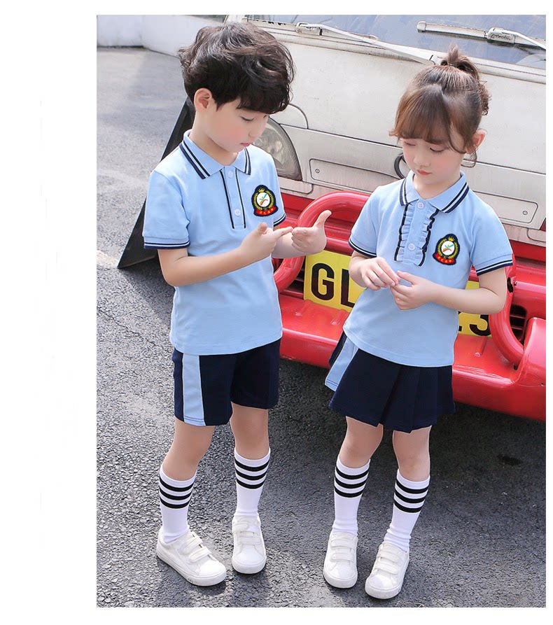 Kindergarten garden clothes summer clothes cotton short-sleeved sports suits new school uniforms children's performance class clothes British style custom-made