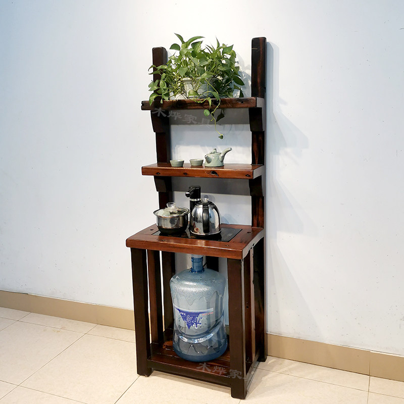 Old boat wood tea frame can move the living room home balcony multi - floor solid wood flour frame 2022 new simple models