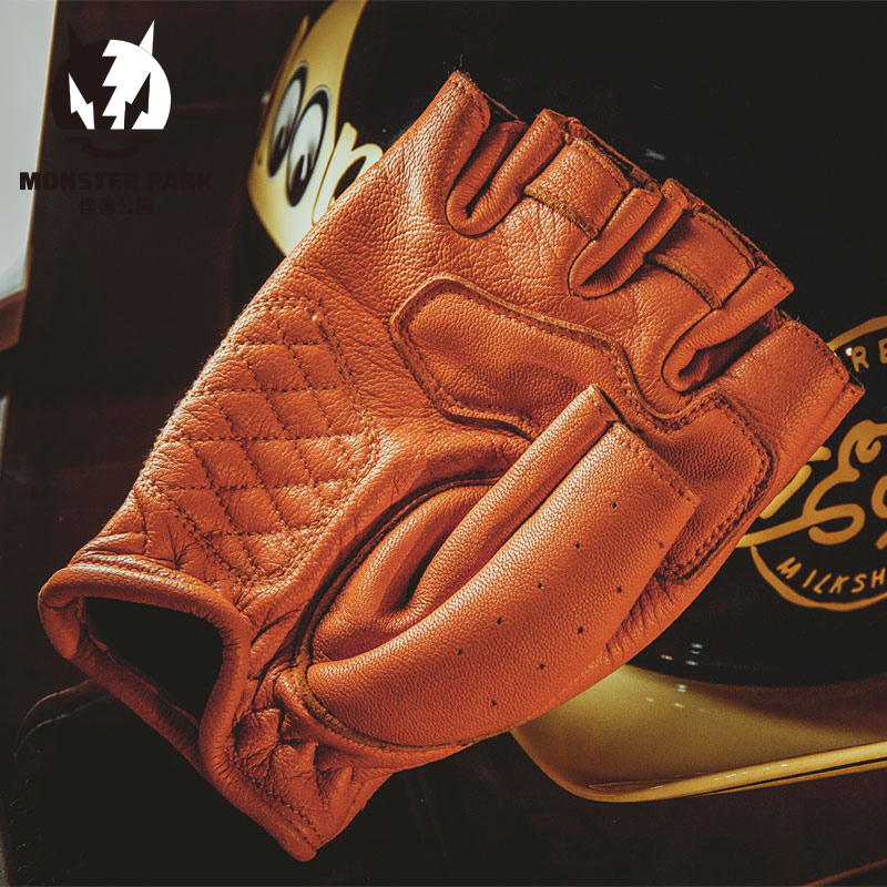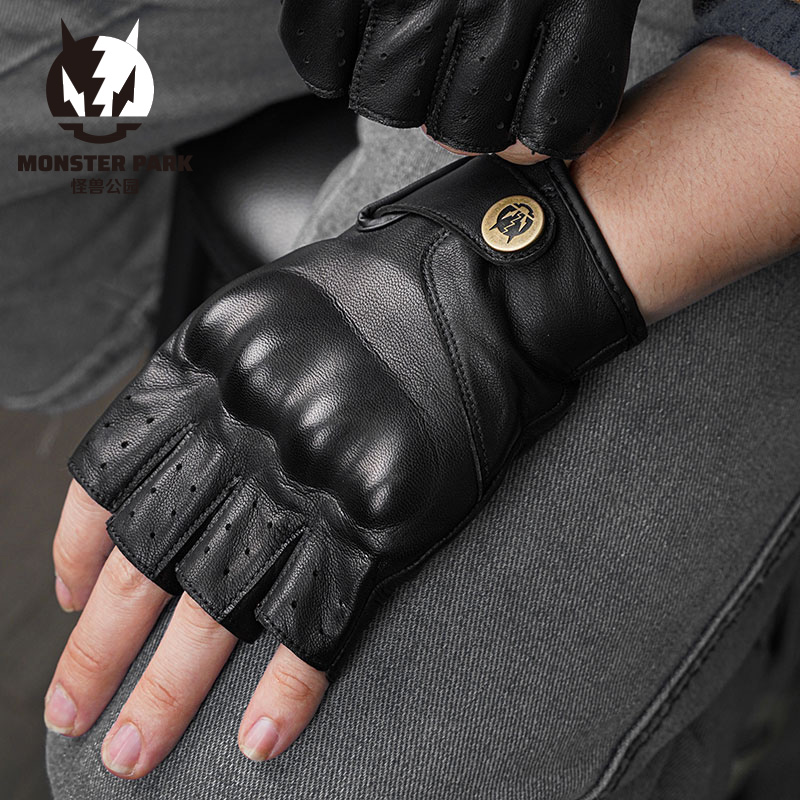 Alien Snail Monster Park Locomotive Halffinger Gloves Male and female Summer Universal Locomotive Riding Sheep Leather Retro