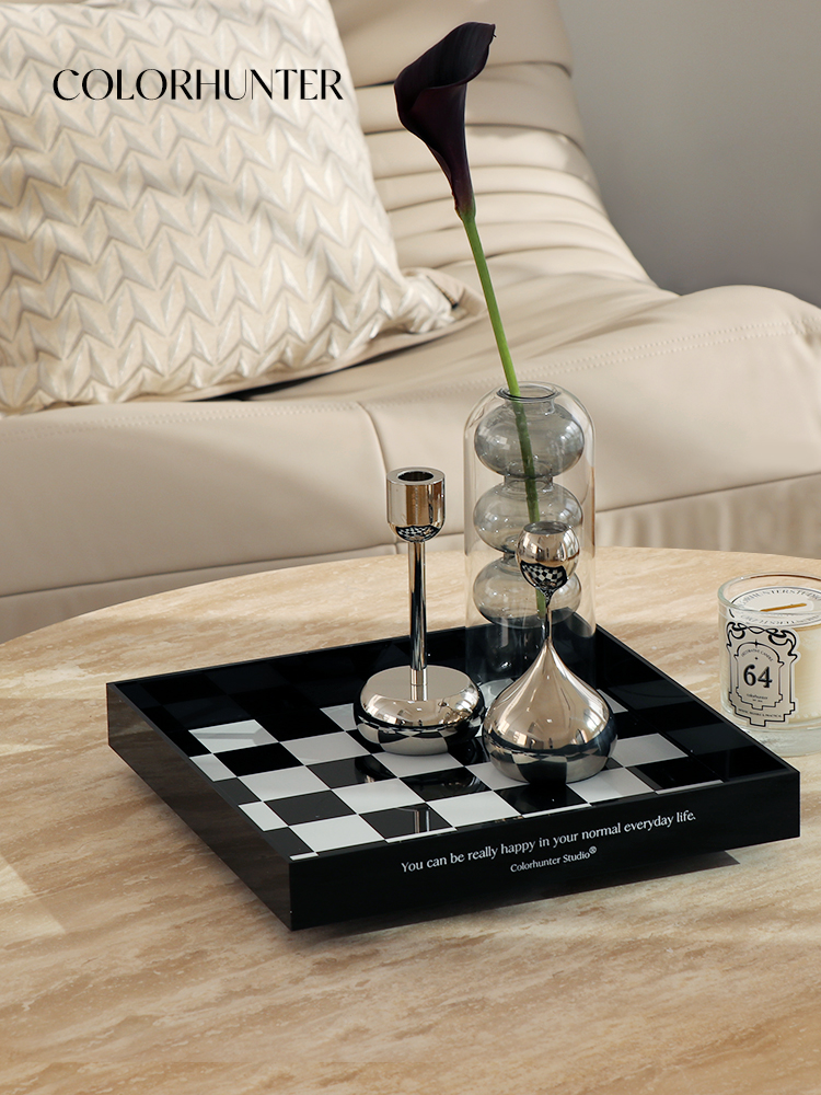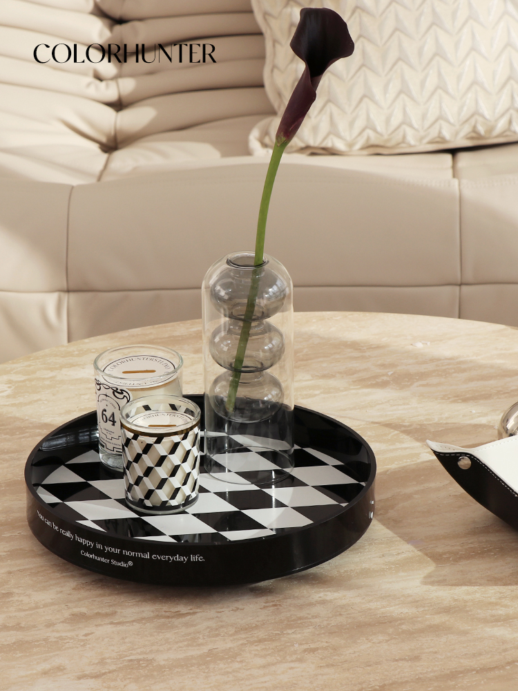 Chess board tray in black and white design of the black and tablet of the Tea Sense Series Modern Simple Acrylic Aroma Decoration Disk
