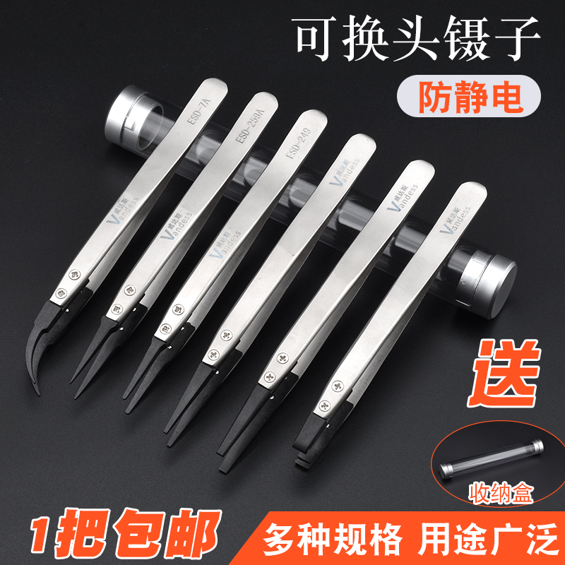 Ceramic tweezers antistatic anti-magnetic and anti-acid and acid-base removable head ESD round pointed plastic stainless steel clips-Taobao