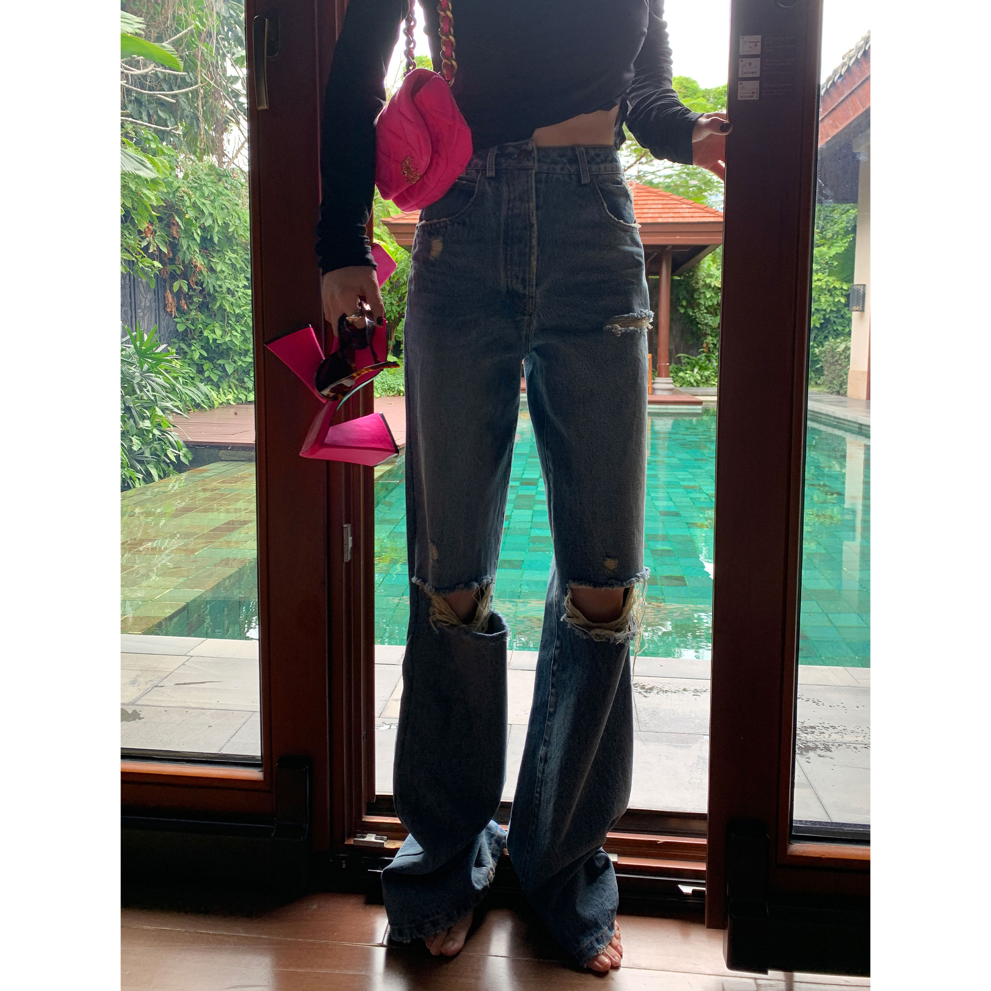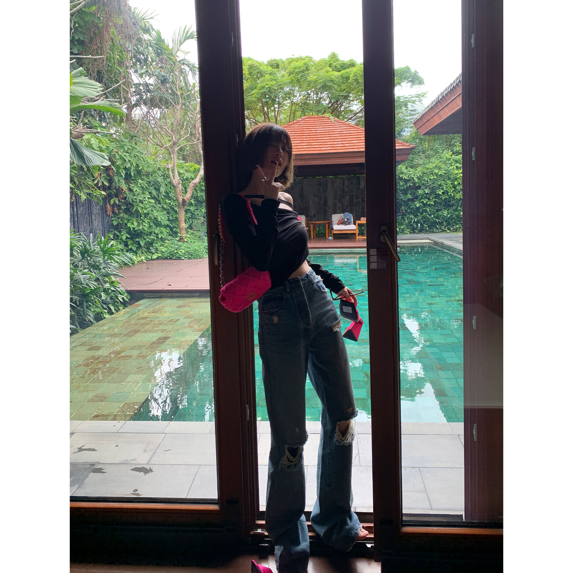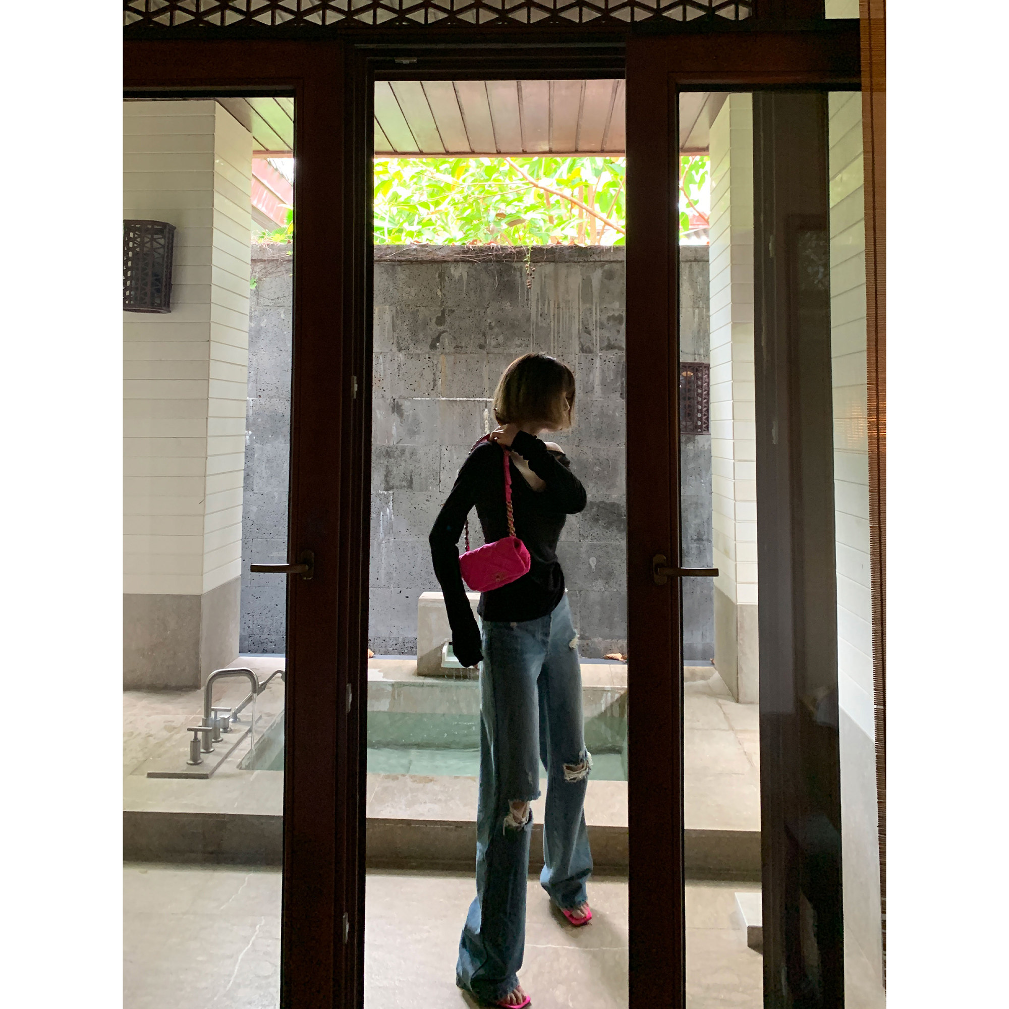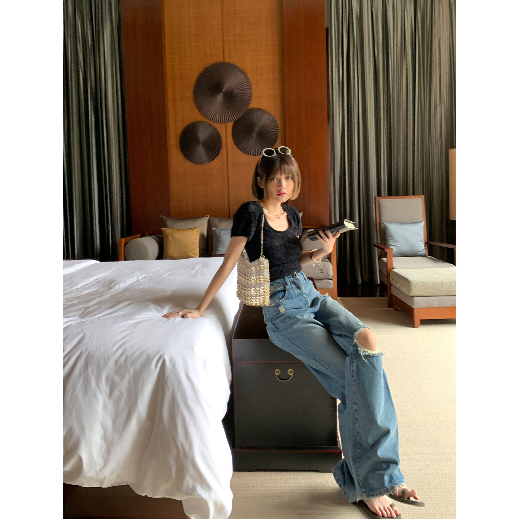 Xinlei Lin2022 spring new blue display slim tall waist lengthened tug wide leg breaking straight barrel jeans female